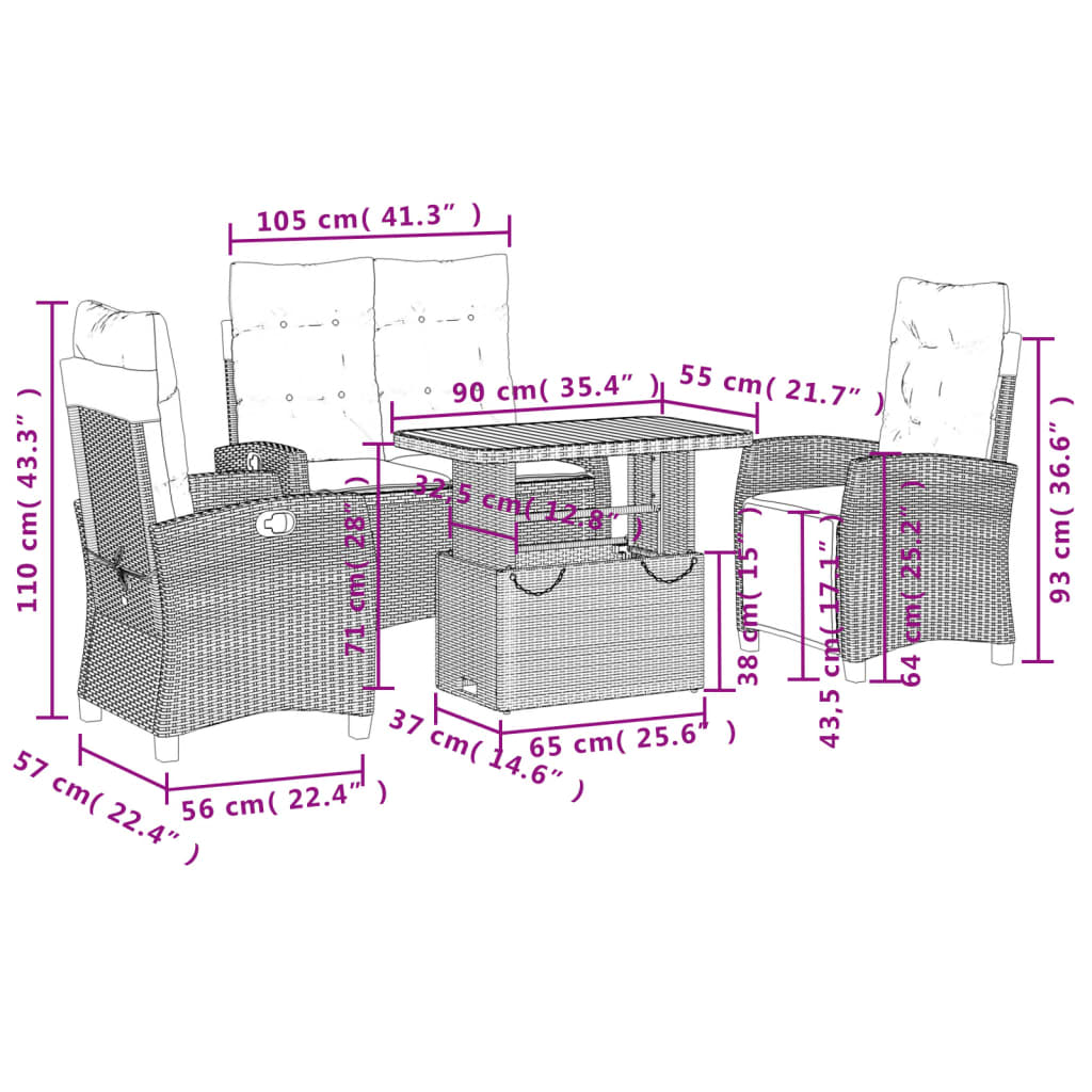 4 pcs conjunto de jardim p/ jardim c/ almofadões vime PE preto