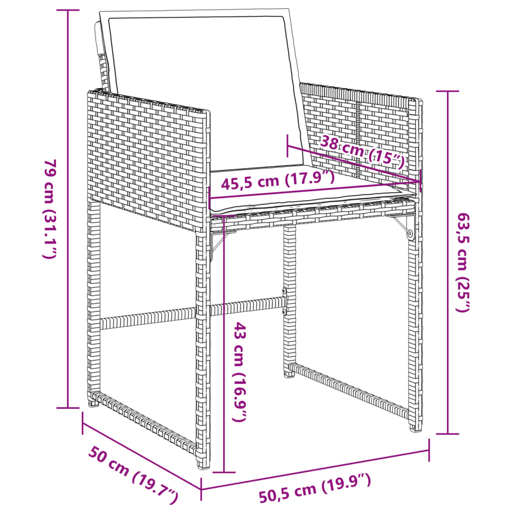 13 pcs conjunto de jantar p/jardim com almofadões vime PE preto
