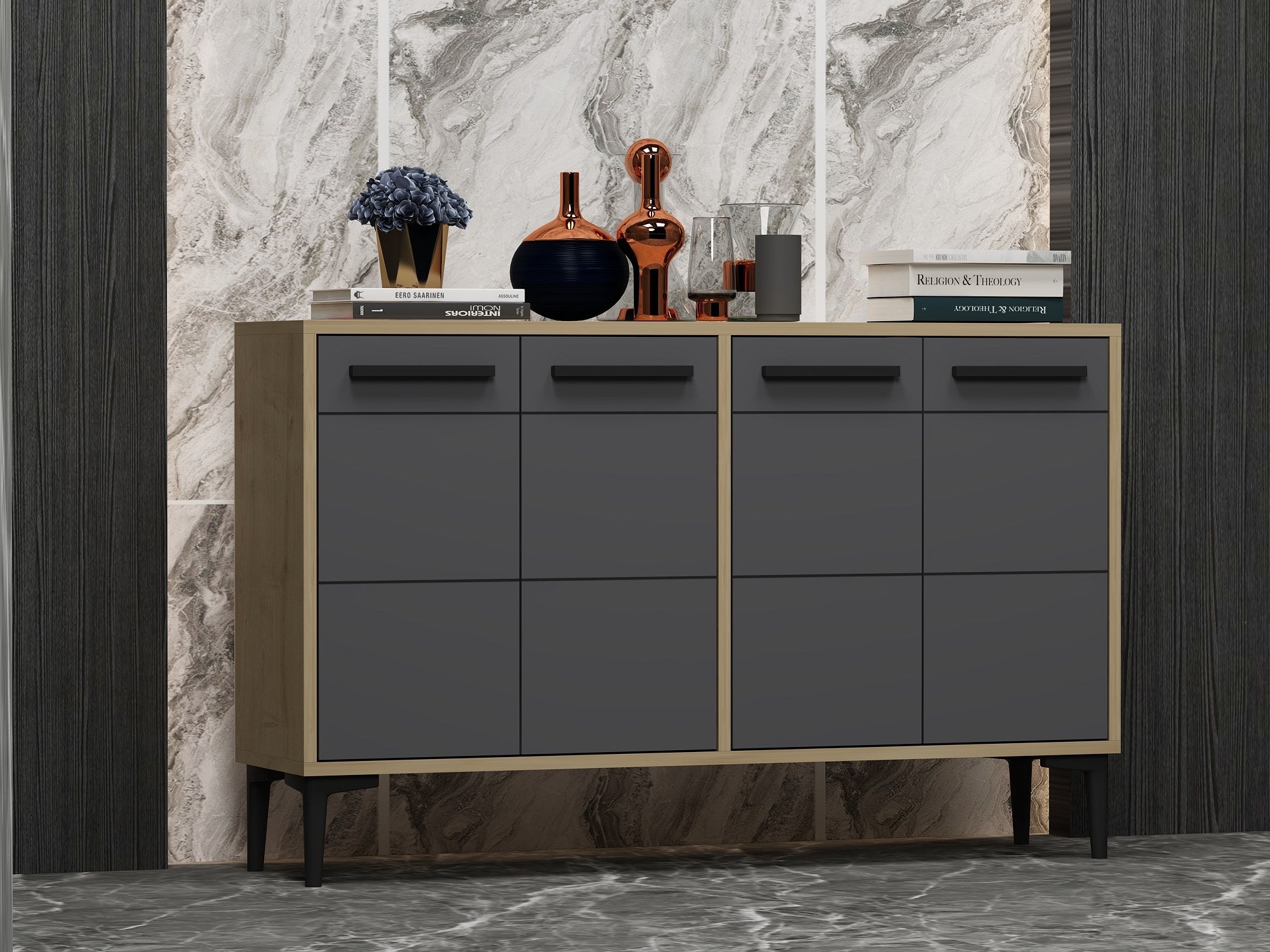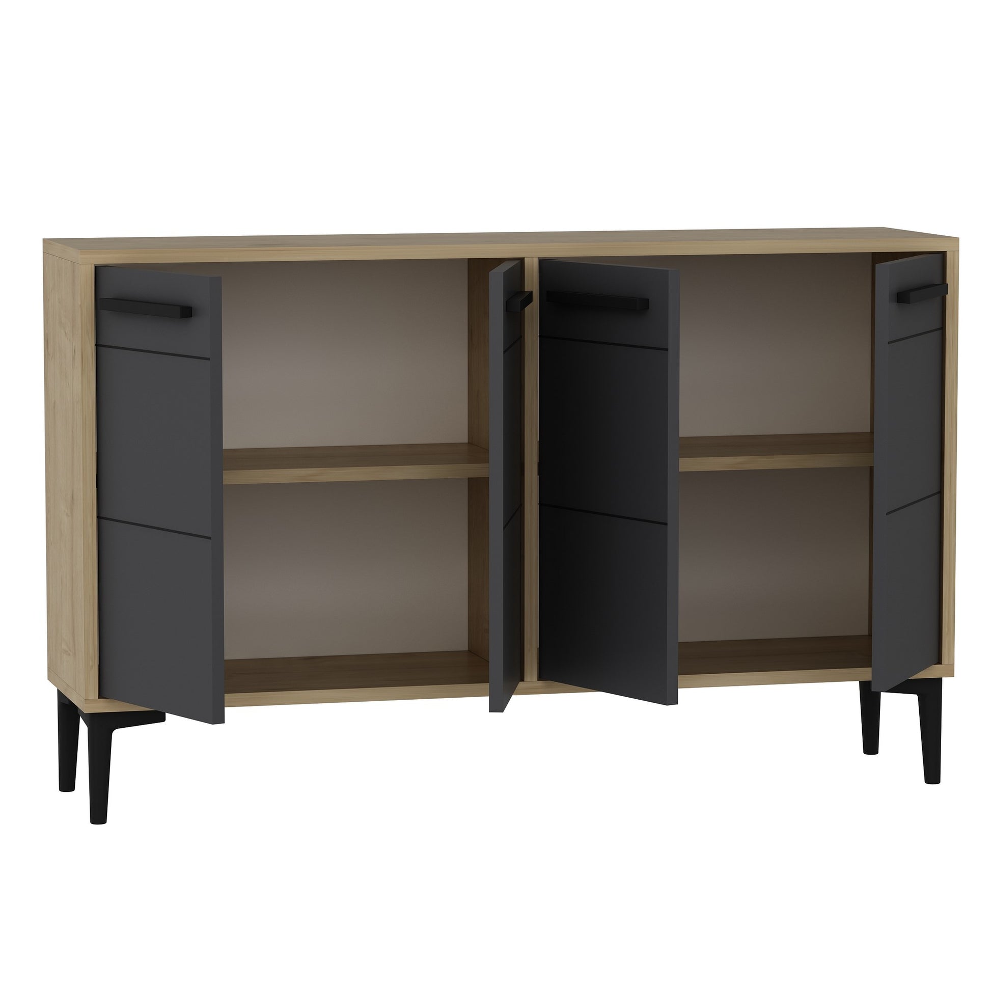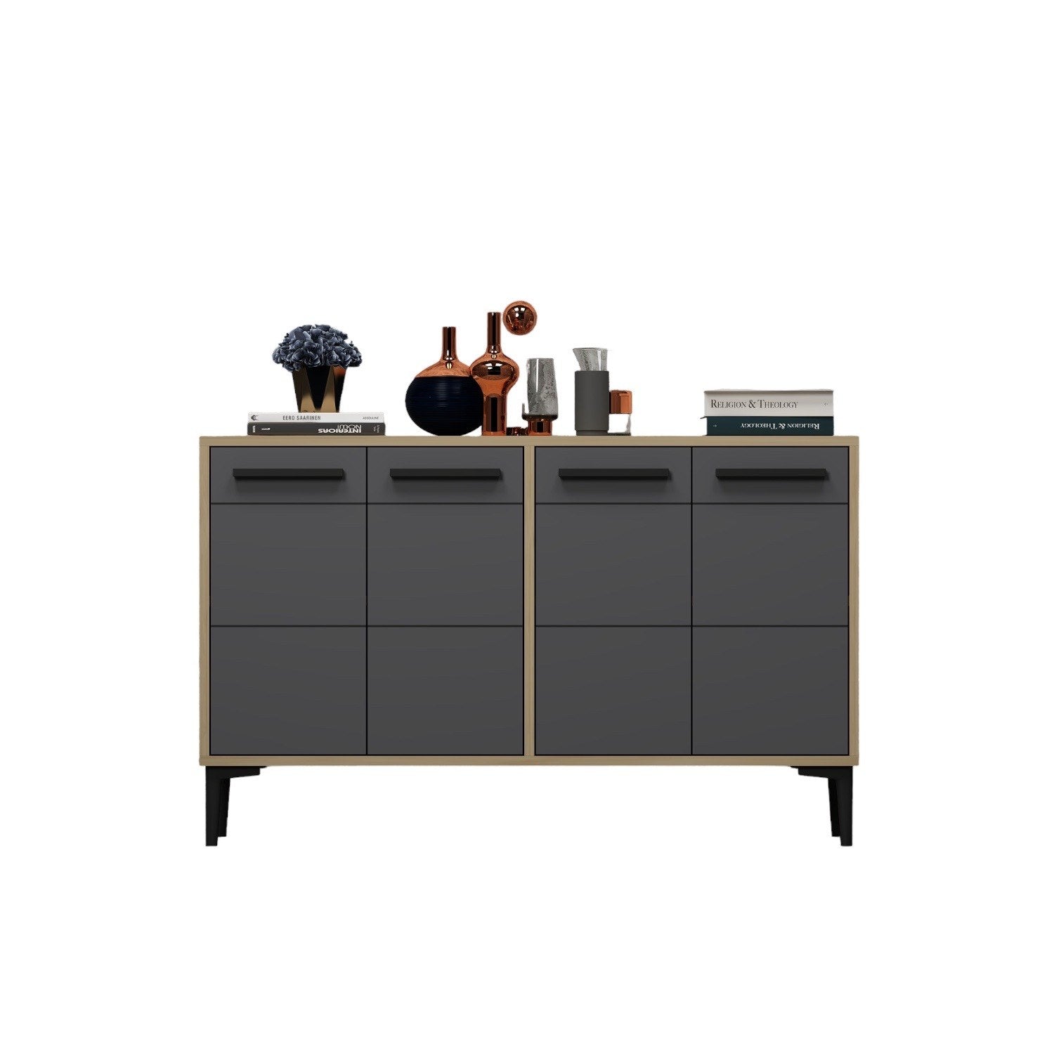 Aparador – 120cm x 30cm x 75cm – Carvalho Safira e Antracite – Painéis de partículas revestidos a melamina