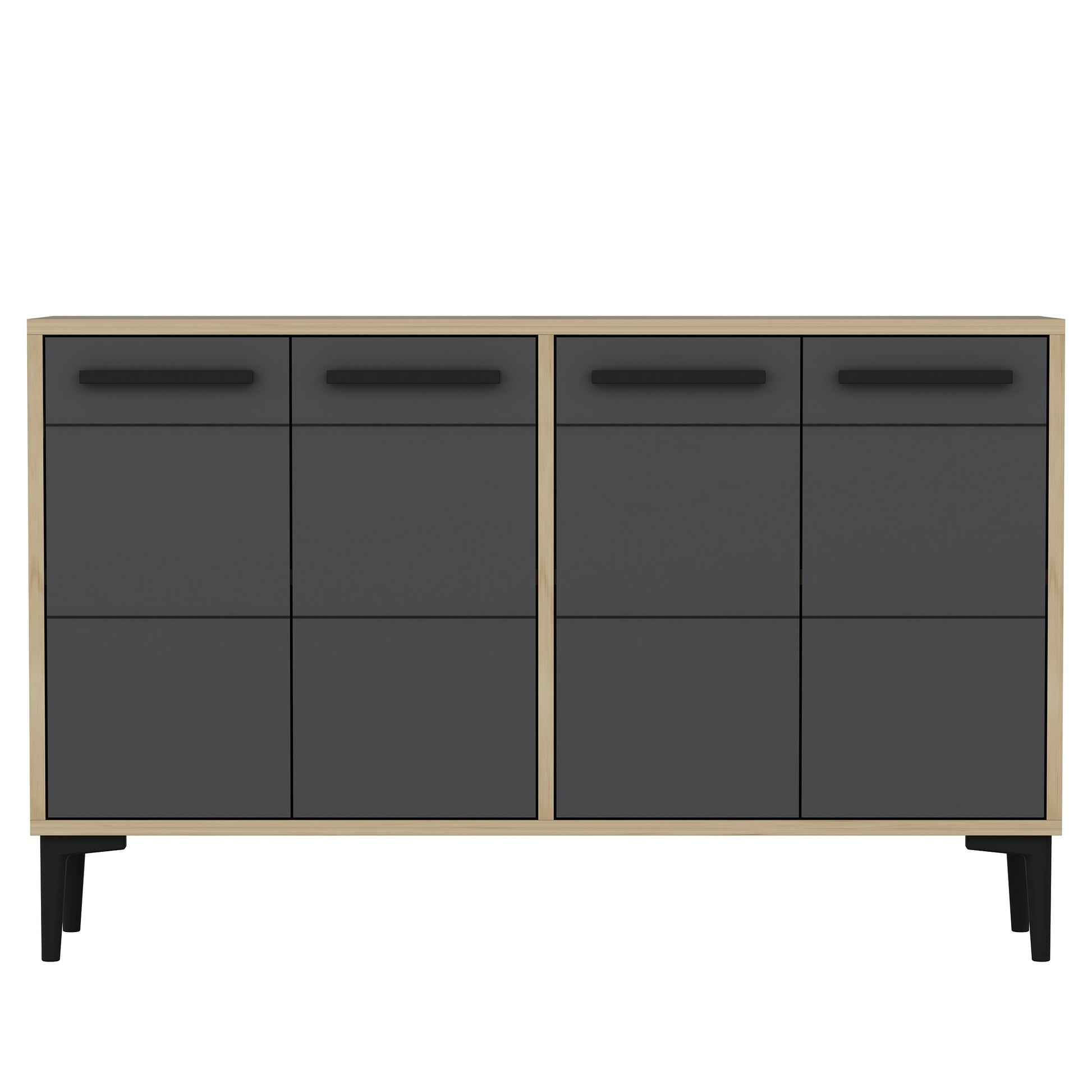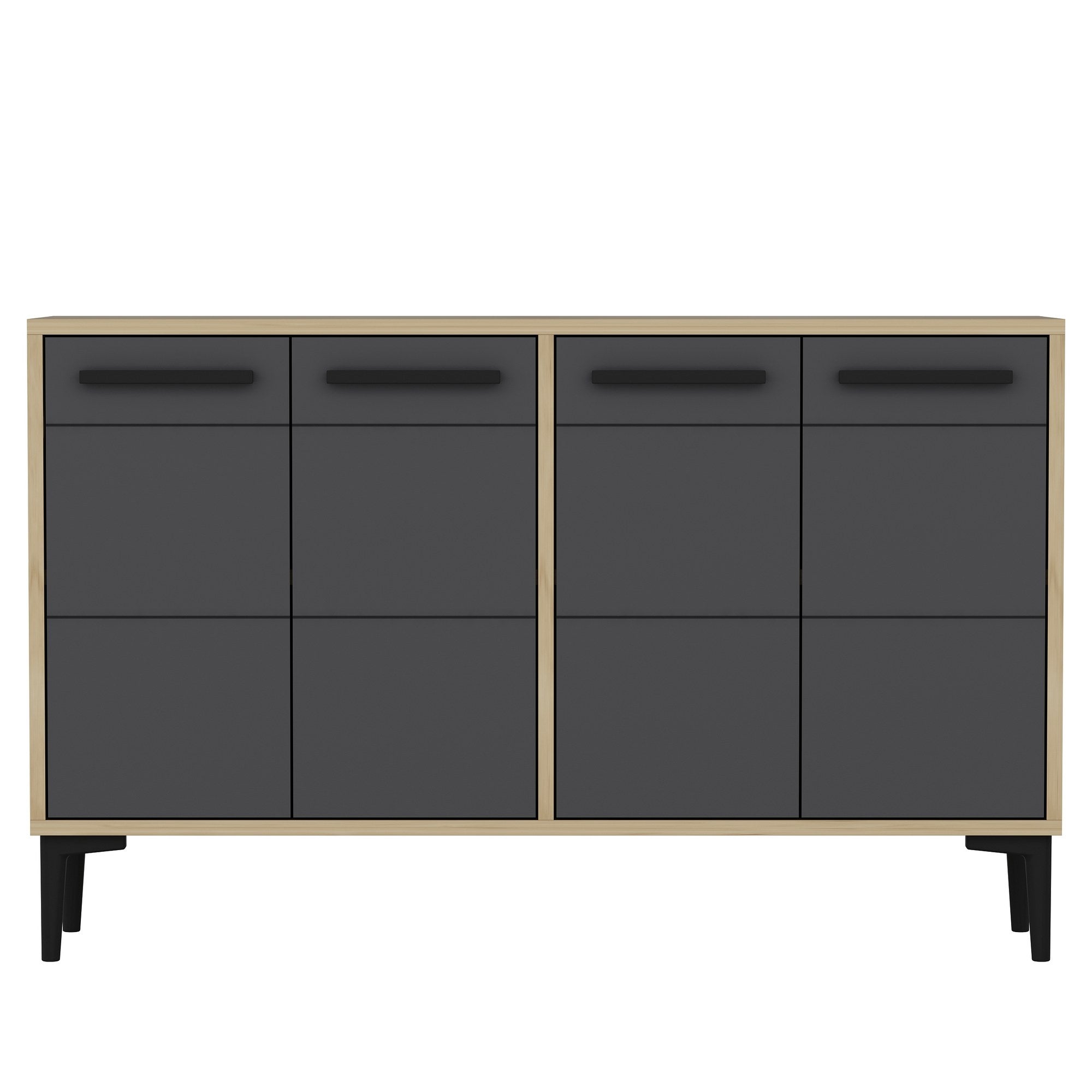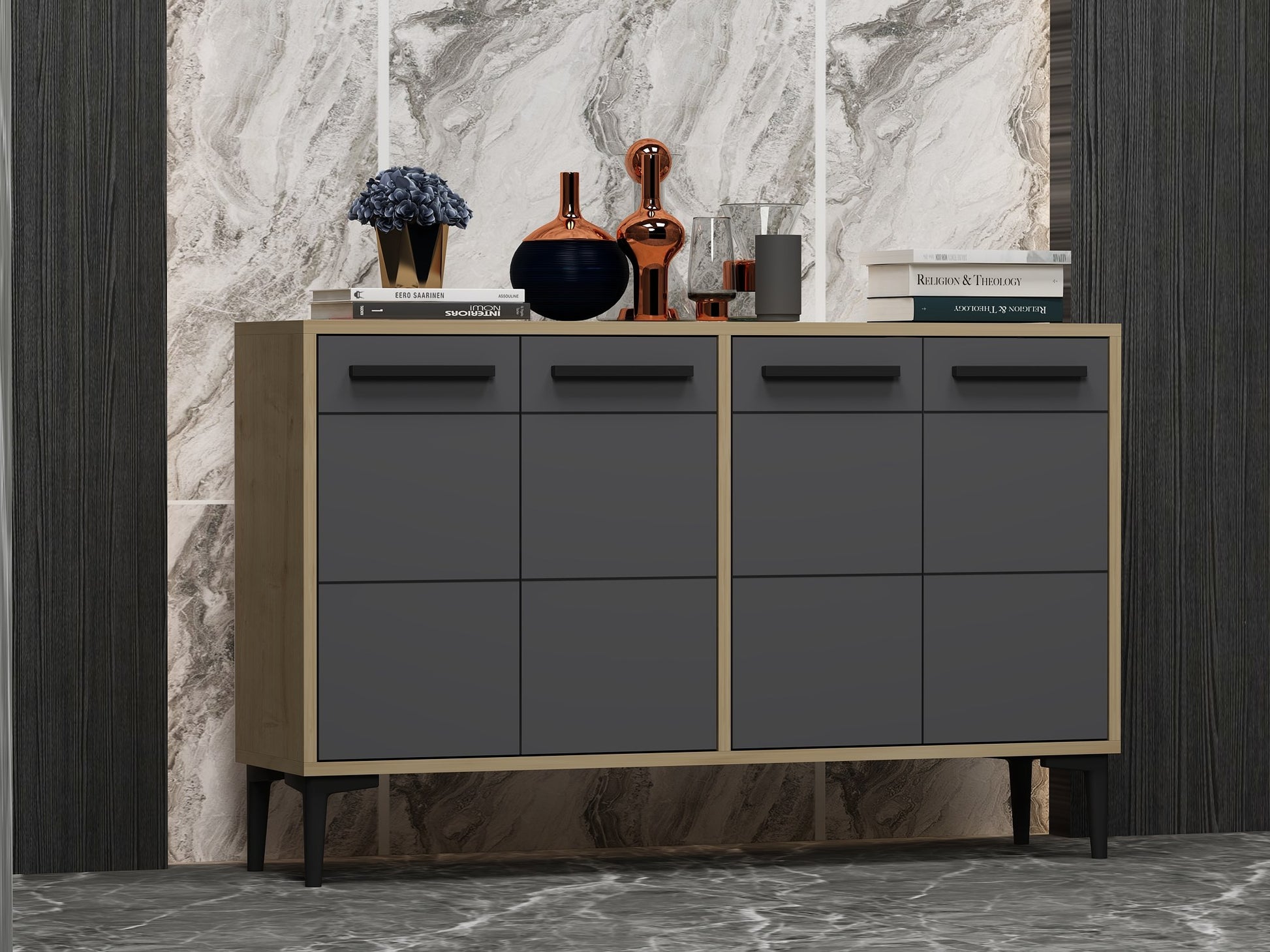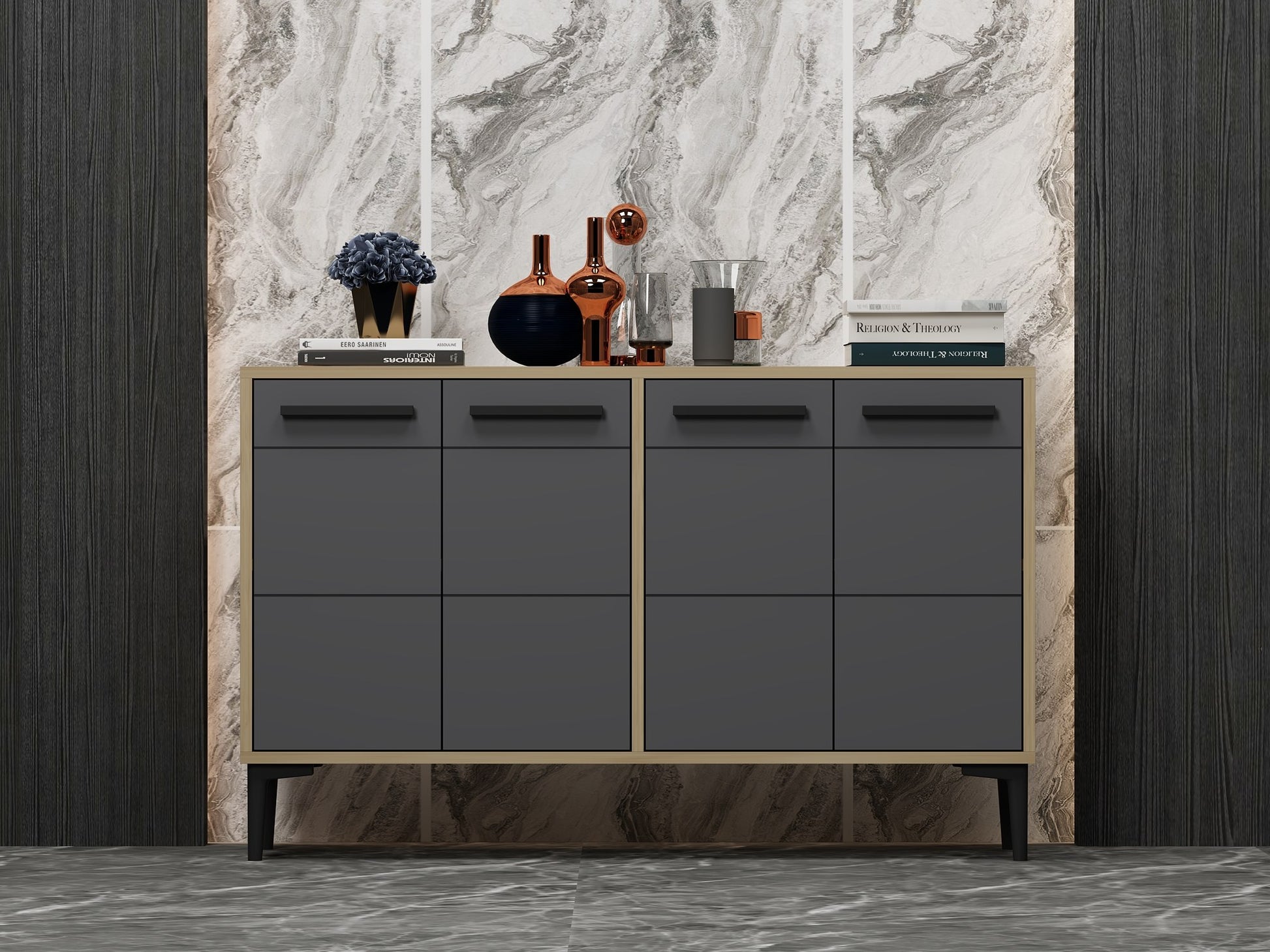 Aparador – 120cm x 30cm x 75cm – Carvalho Safira e Antracite – Painéis de partículas revestidos a melamina