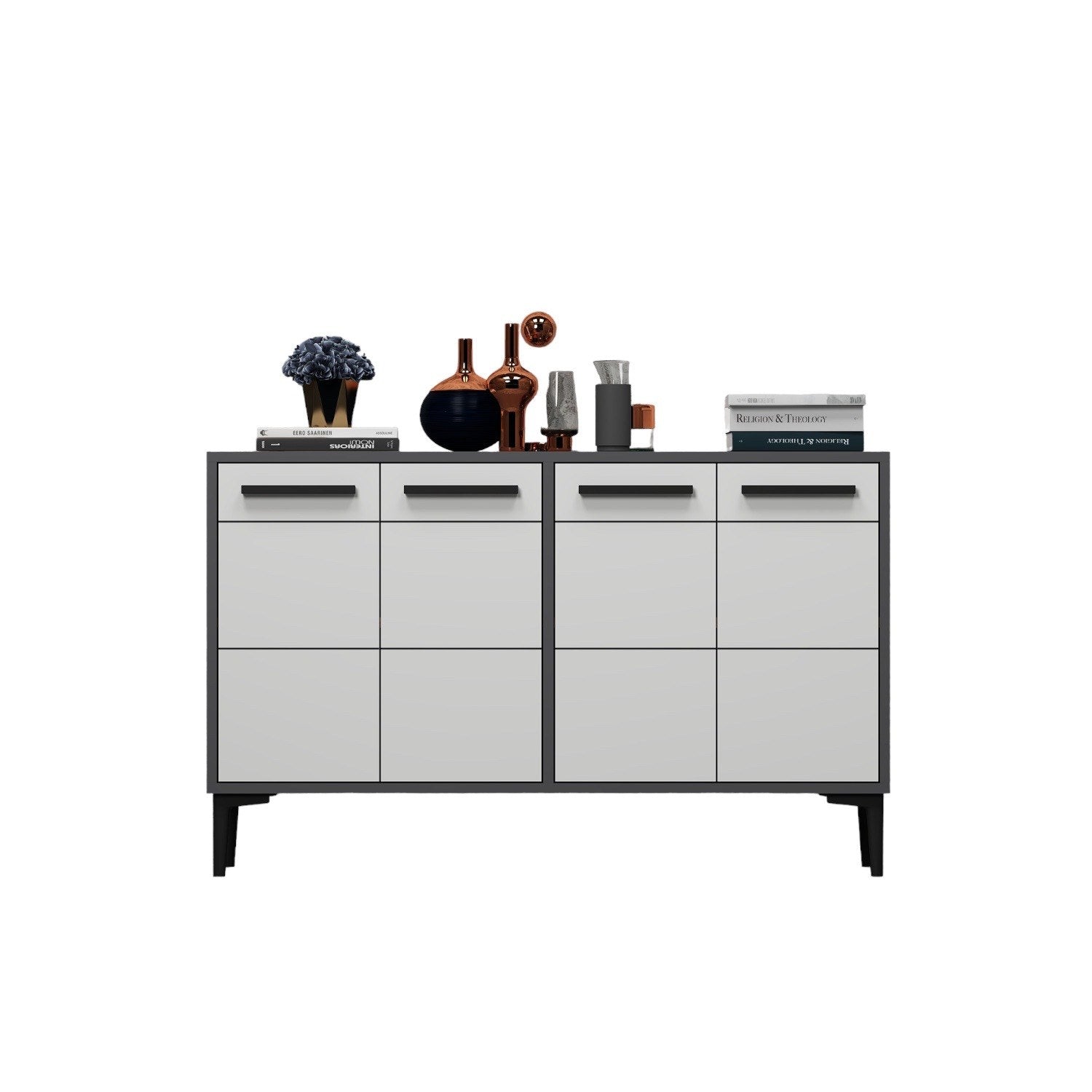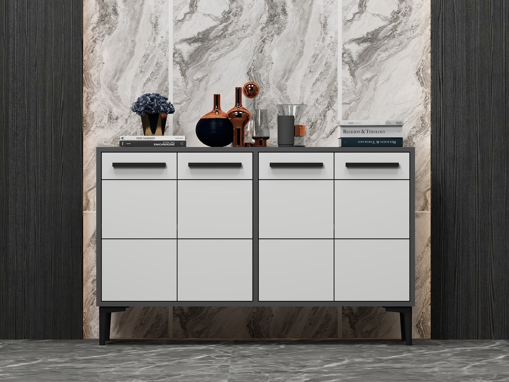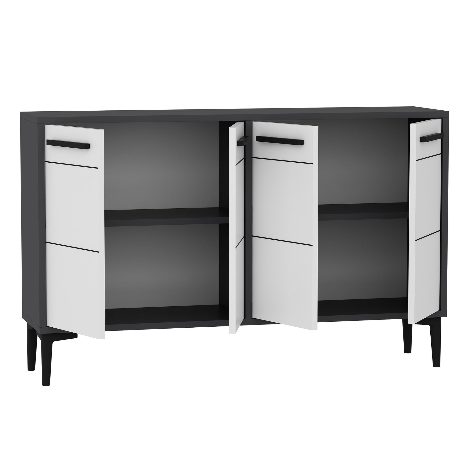 Aparador de TV – 120cm x 30cm x 75cm – Antracite e Branco – Painel de partículas revestido em melamina