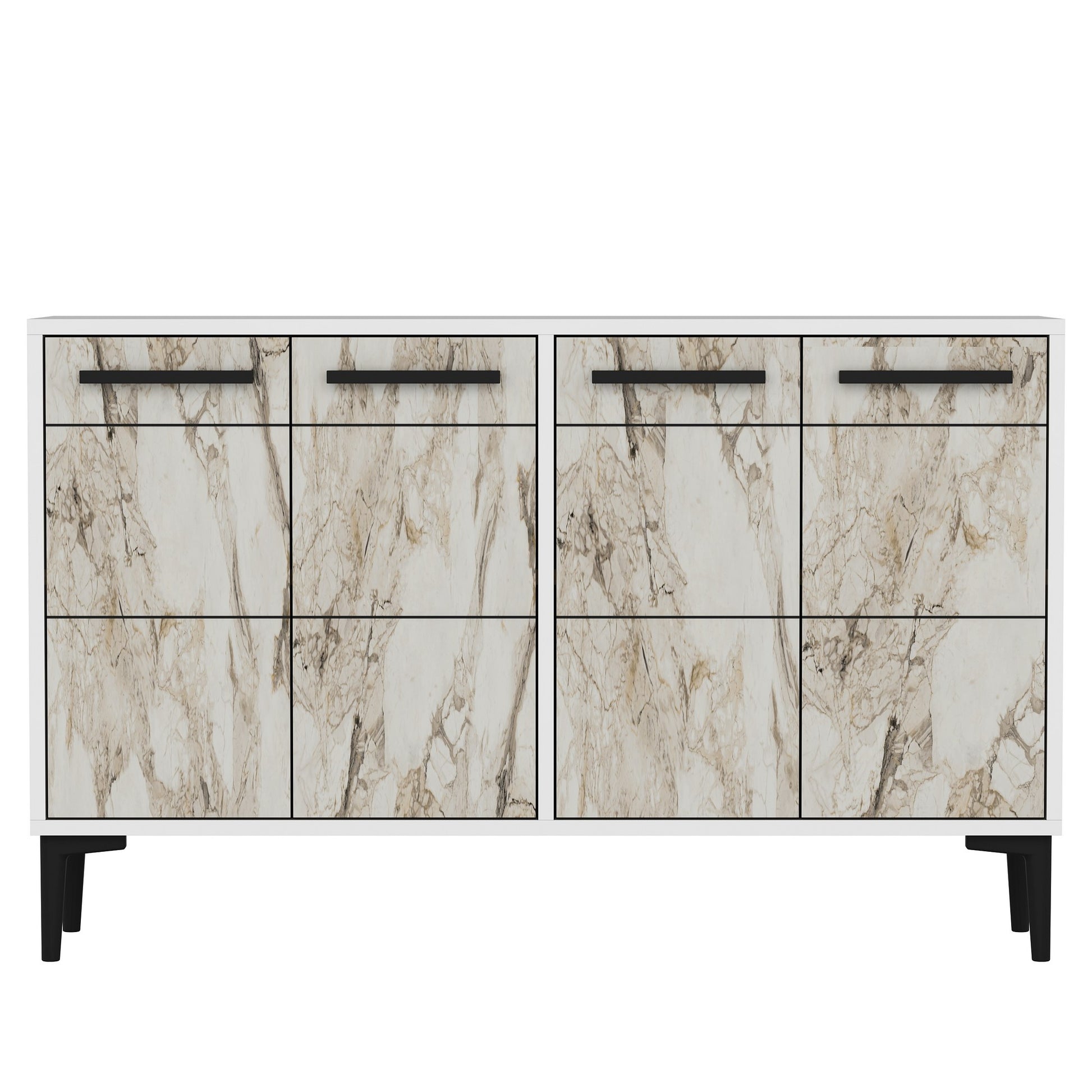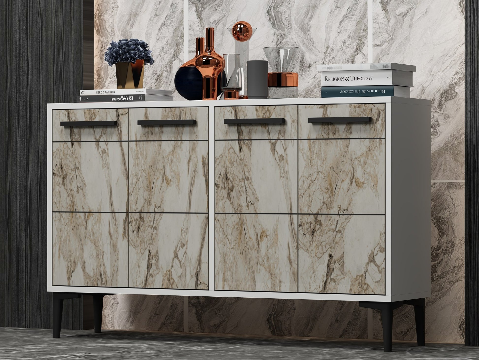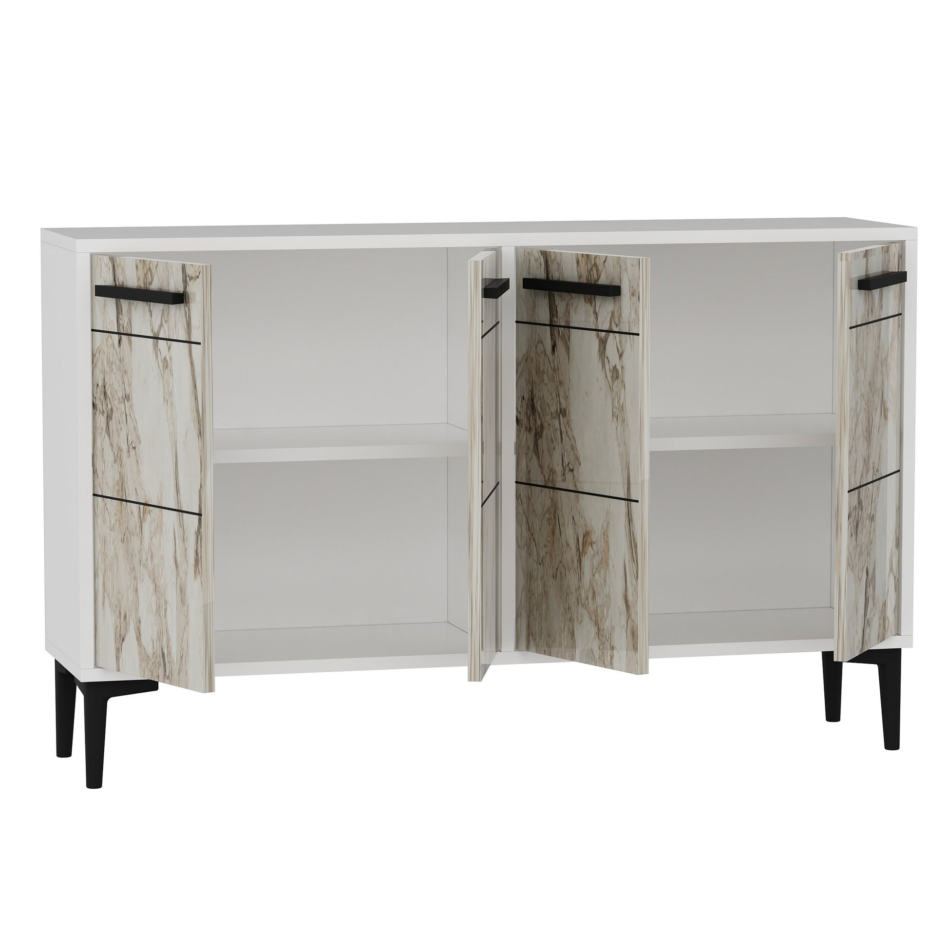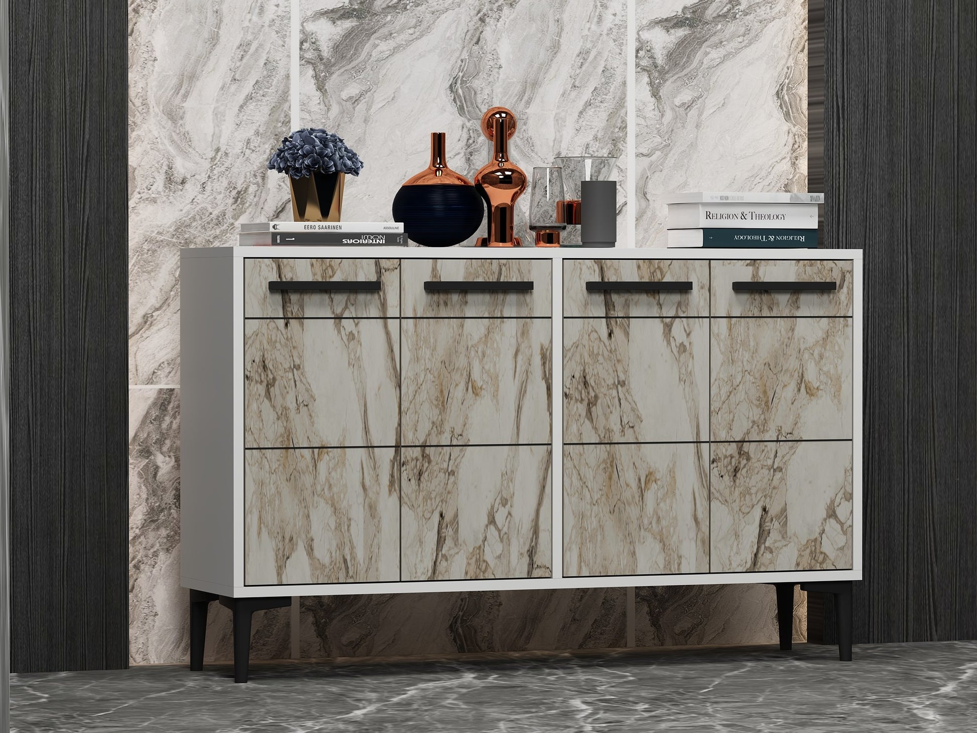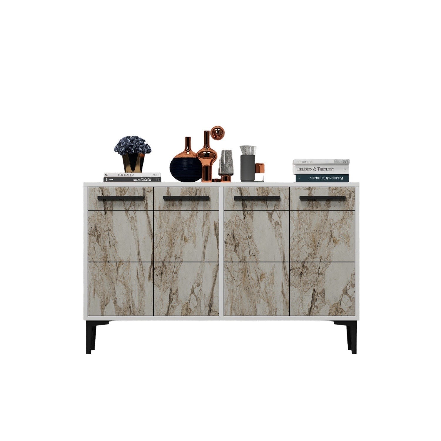 Aparador de MDF – 120cm x 30cm x 75cm – Branco e Mármore