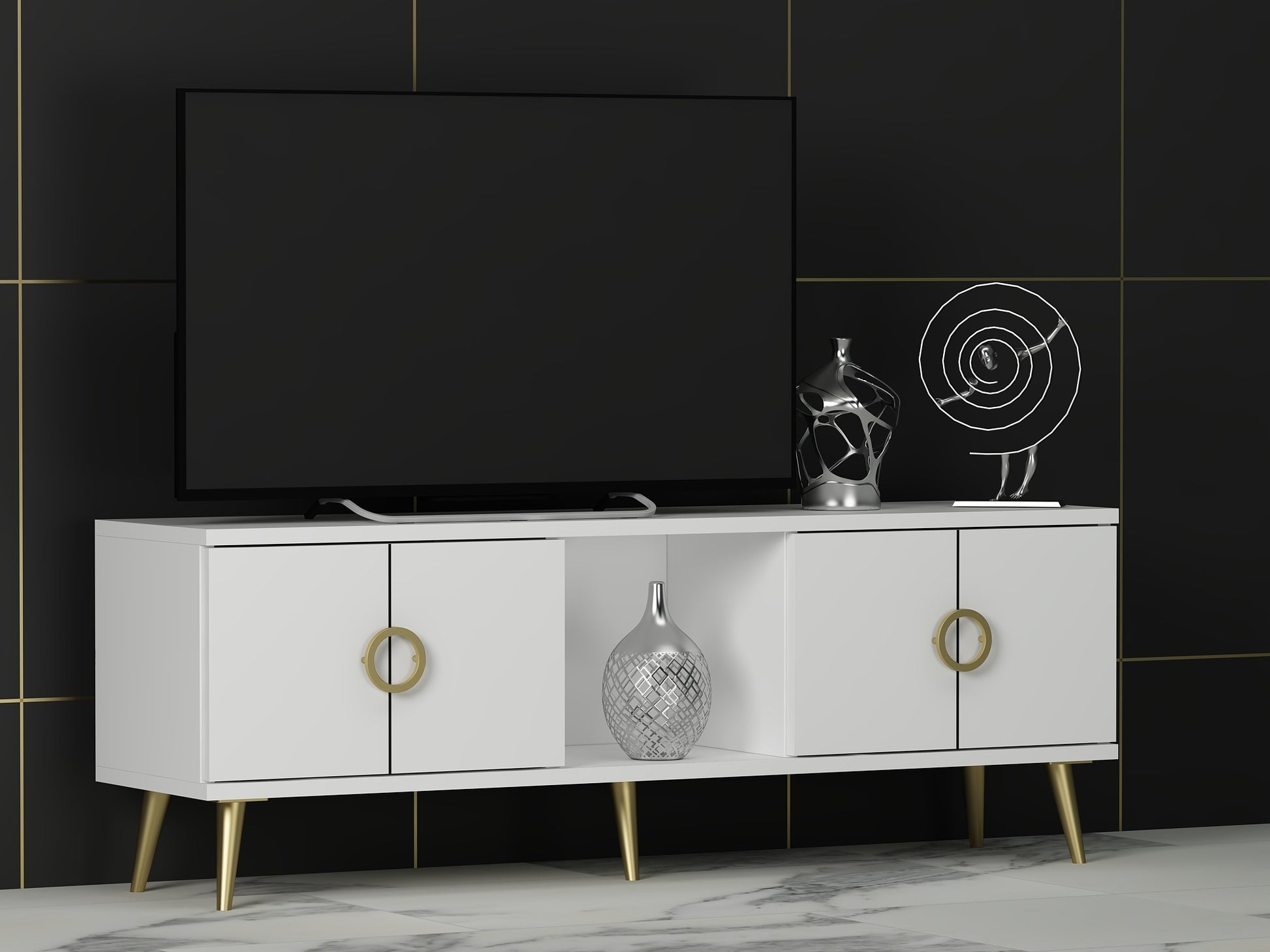 Transforme sua sala de estar com nosso elegante e moderno suporte para TV. Feito de 100% de MDF revestido de melamina, este suporte não é apenas durável, mas também estiloso. A cor branca limpa iluminará qualquer espaço, criando uma atmosfera fresca e convidativa para você e seus convidados desfrutarem.