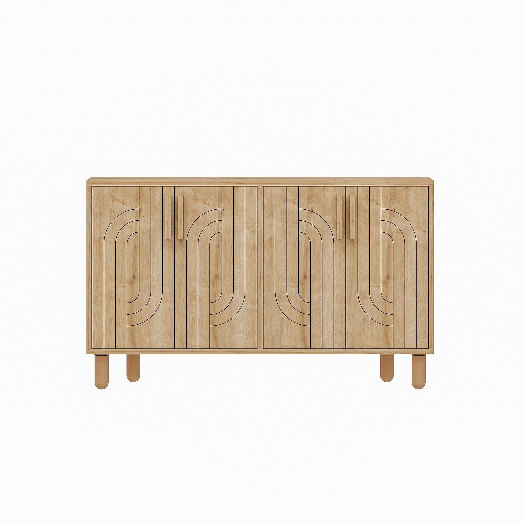 Aparador em painéis de partículas revestido a melamina – 120 cm x 73.6 cm x 29.6 cm – Carvalho Saphire