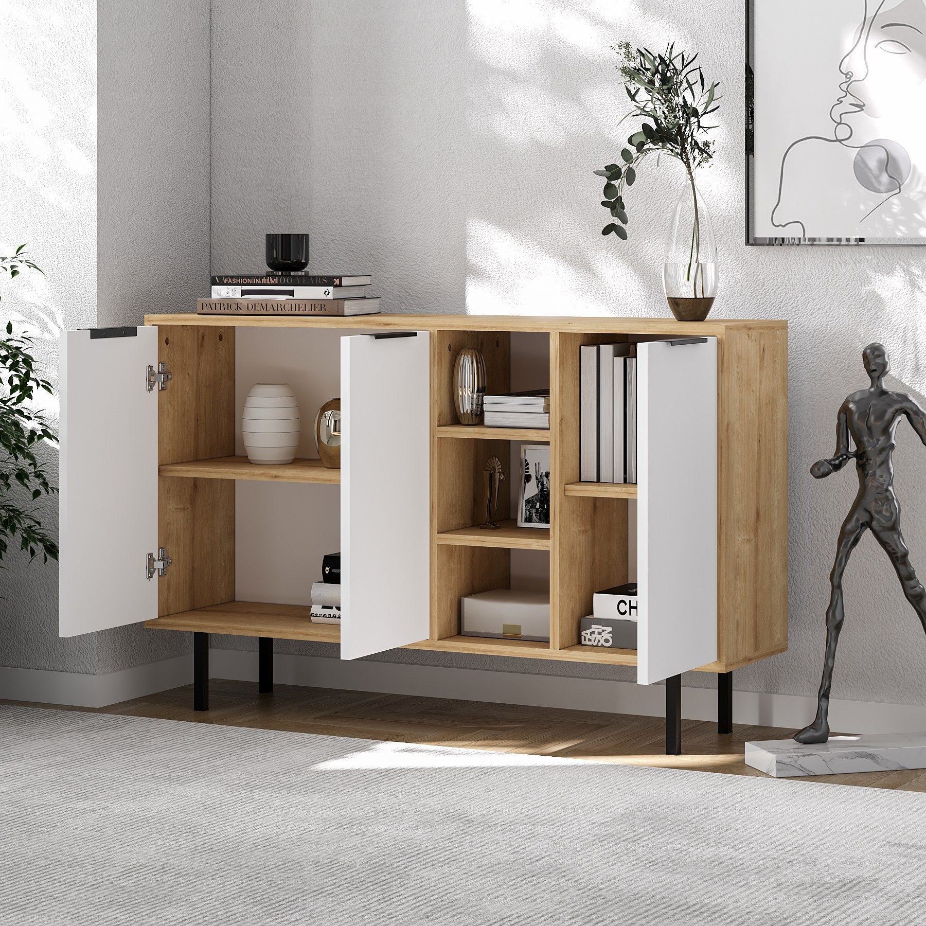 Aparador – 120cm x 75cm x 29.6cm – Carvalho Safira e Branco – Melamina