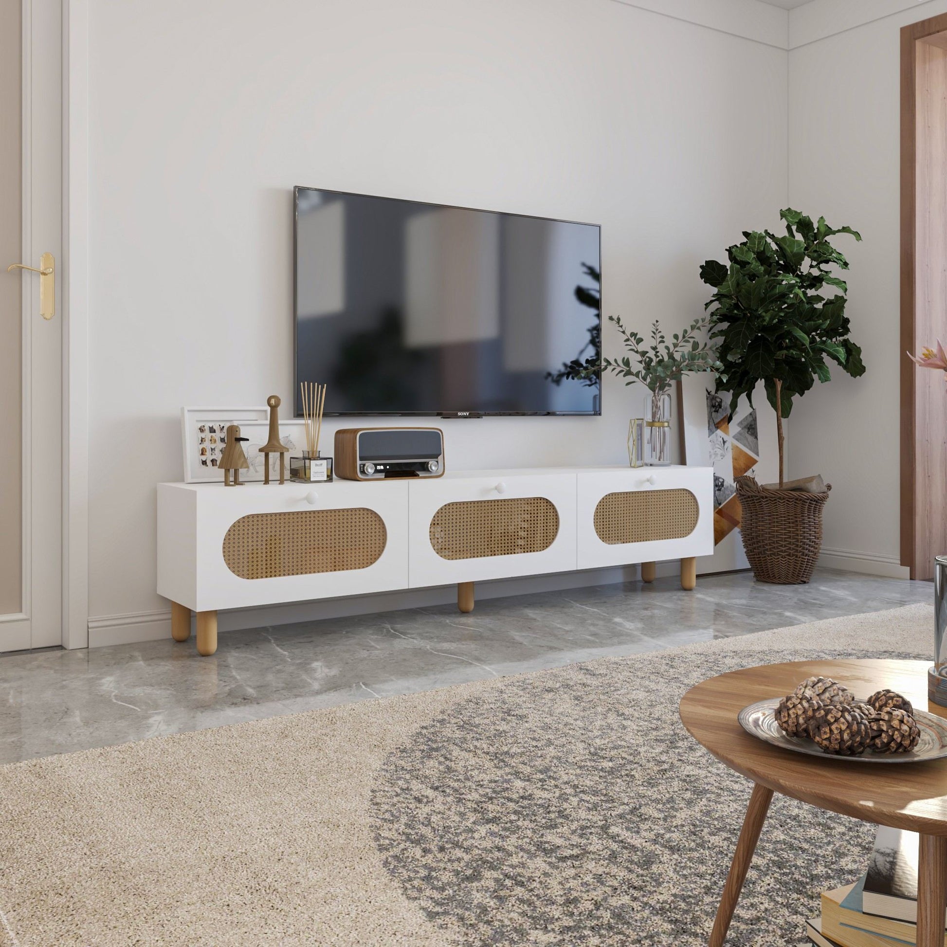Móvel de TV – 180 cm – Branco e Rattan – MDF
