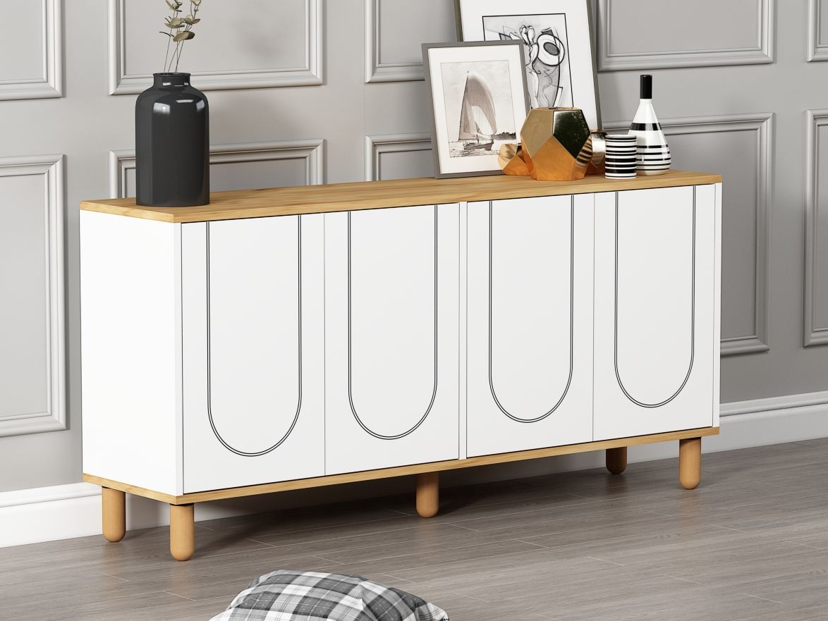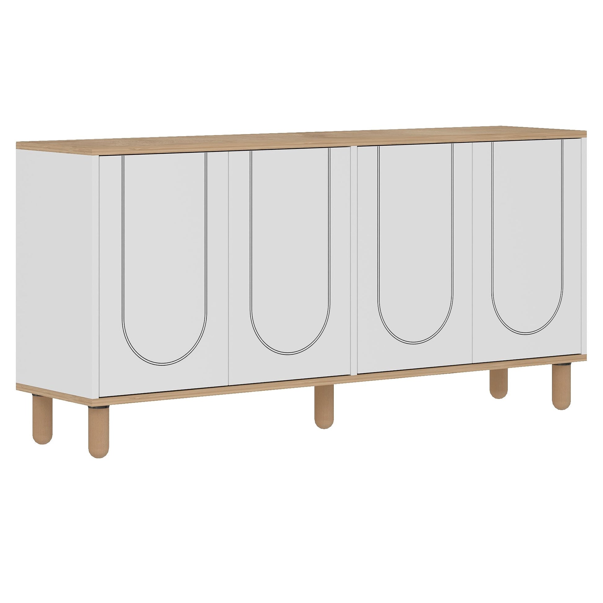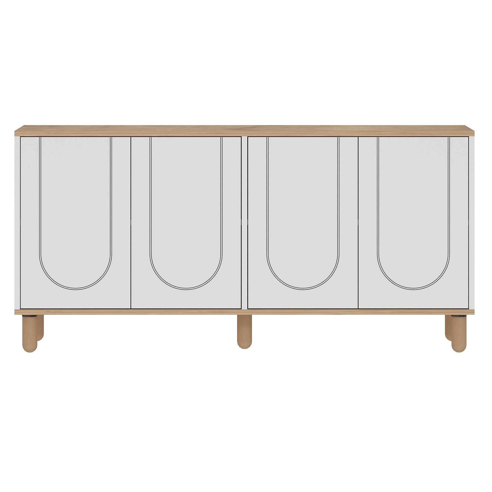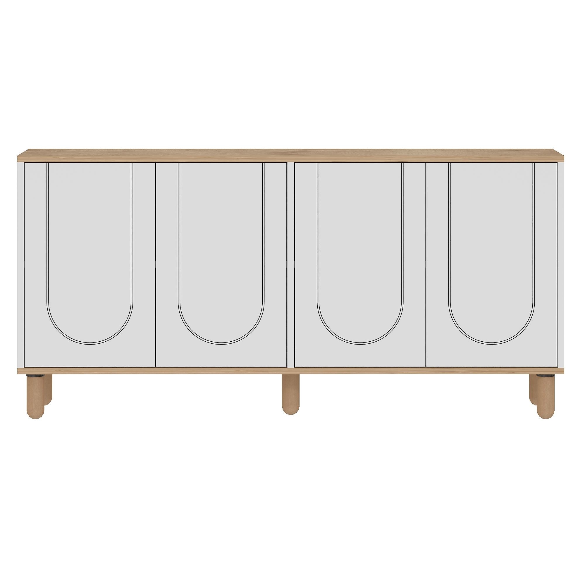 Aparador em aglomerado revestido de melamina – 150 cm x 73 cm x 36 cm – Carvalho Safira e Branco