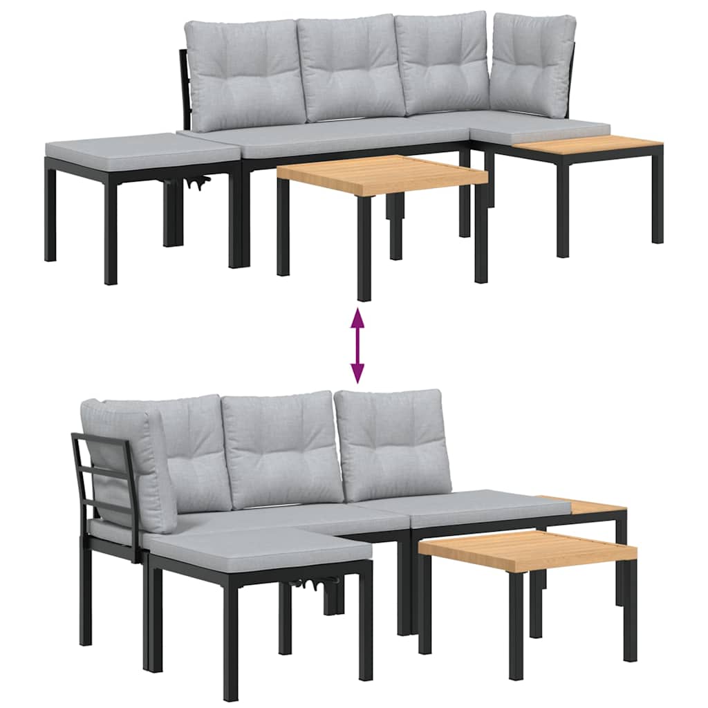 Bancos de jardim com almofadões 4 pcs aço revestido a pó preto