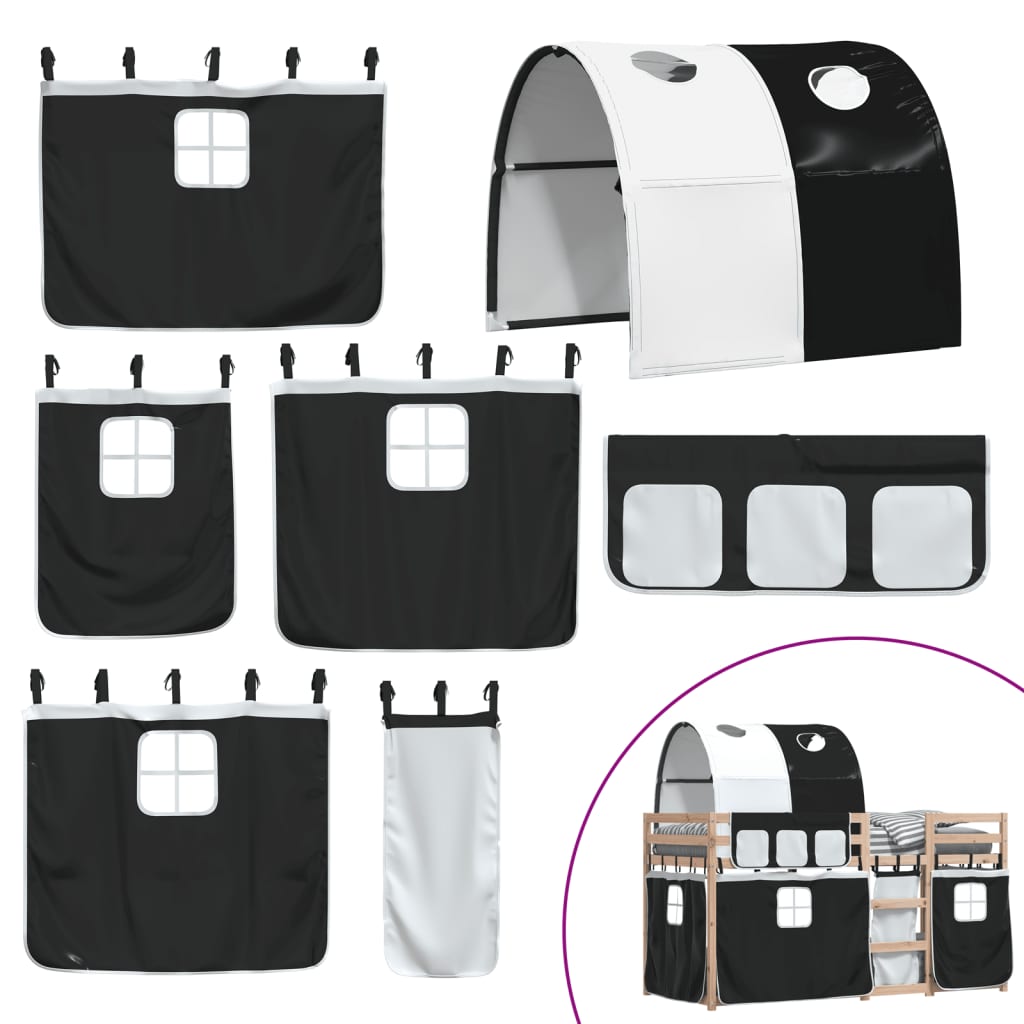 Beliche com cortinas 90x200 cm pinho maciço branco e preto