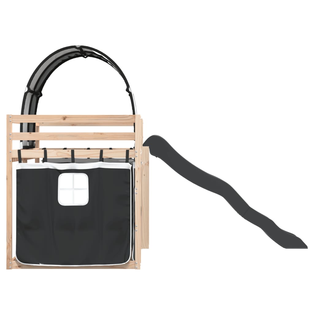 Beliche com escorrega e cortinas 80x200 cm branco e preto