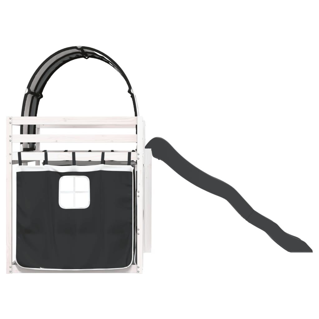 Beliche com escorrega e cortinas 90x190 cm branco e preto