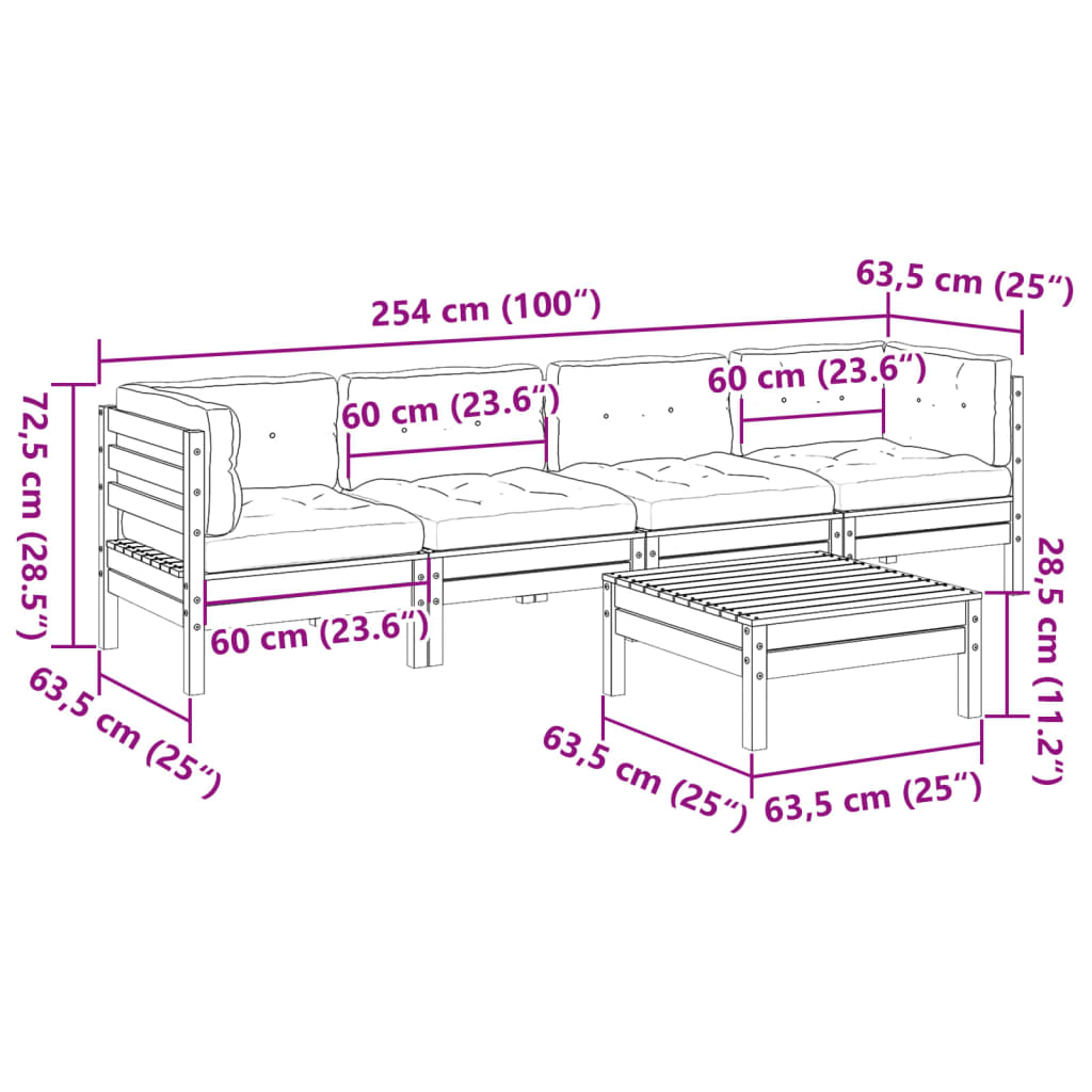 5 pcs conj. sofás jardim c/ almofadões madeira abeto-de-douglas