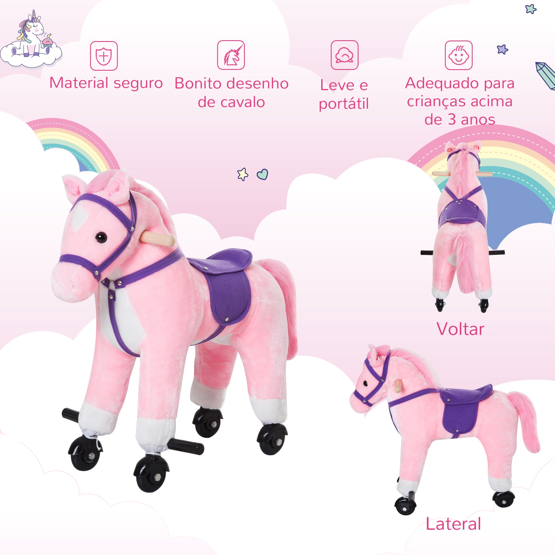 Cavalo para Crianças – 55x23x60 cm – Rosa – Pelúcia, aço, algodão PP e PU