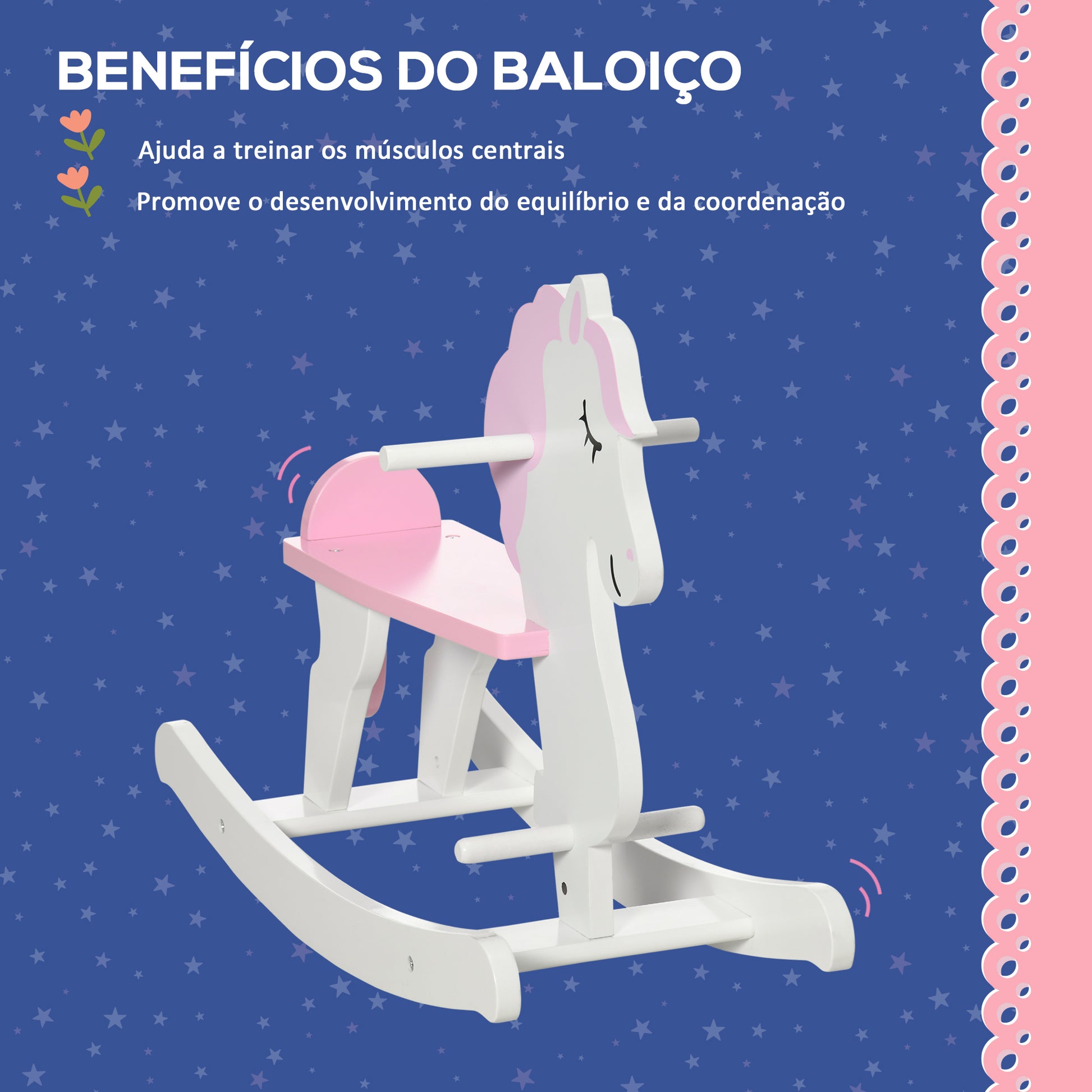 Cavalo Baloiço Infantil de Madeira 68x27x46.5 cm Branco e Rosa