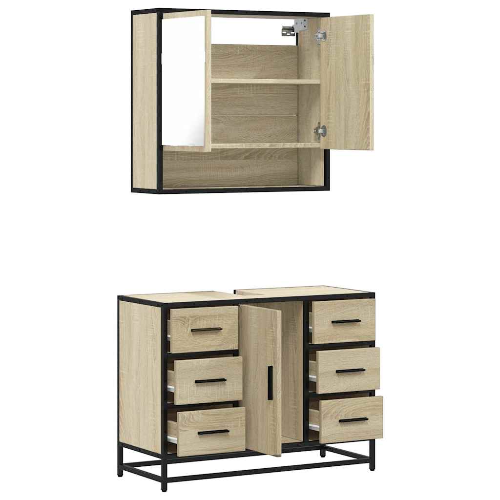 2 pcs conj. móveis casa banho derivados madeira carvalho sonoma