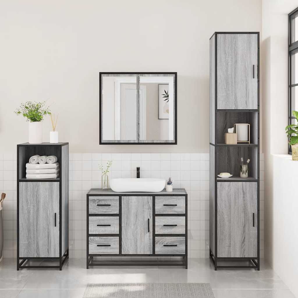 3 pcs Conjunto móveis casa de banho madeira proc. cinza sonoma