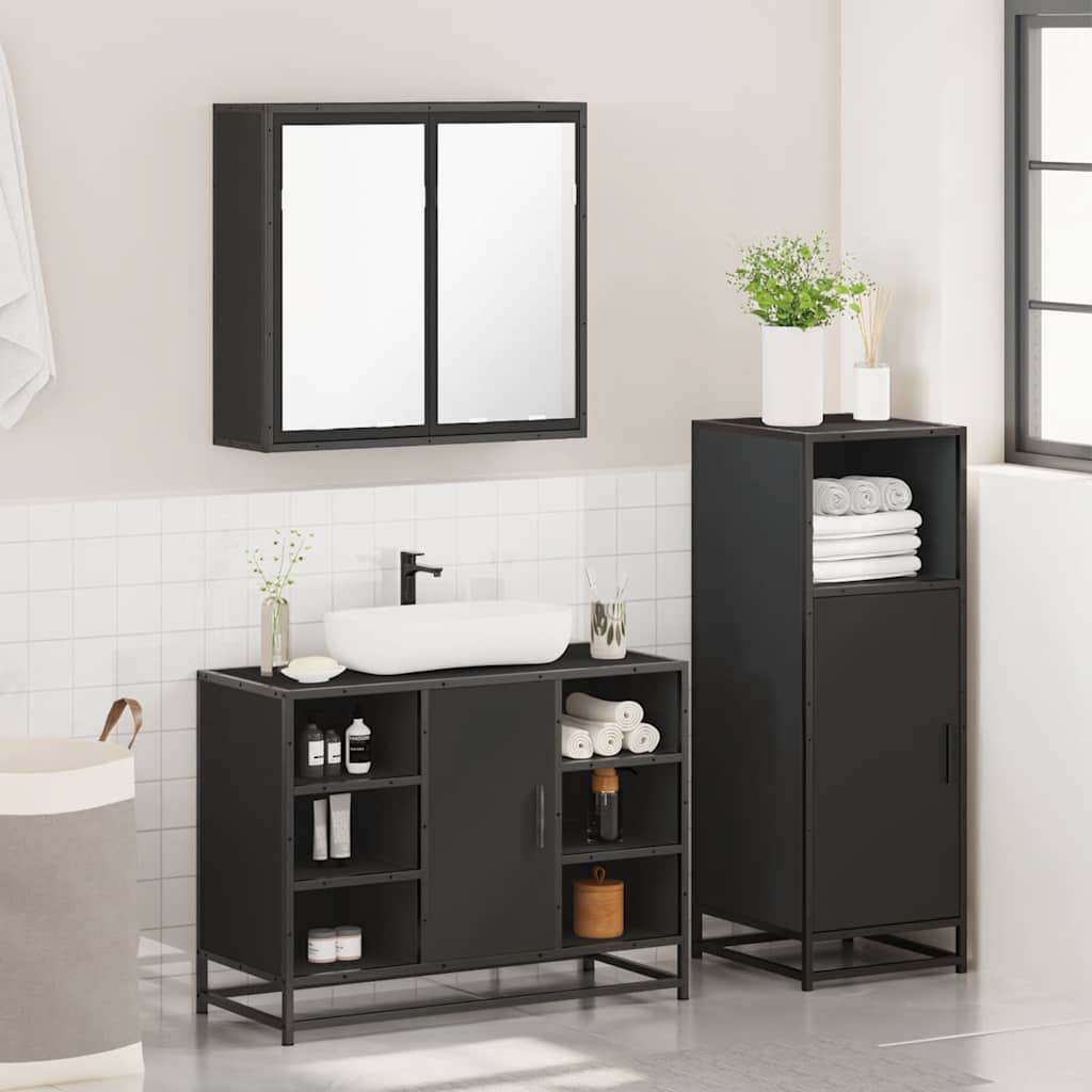 3 pcs conjunto móveis casa de banho derivados de madeira preto