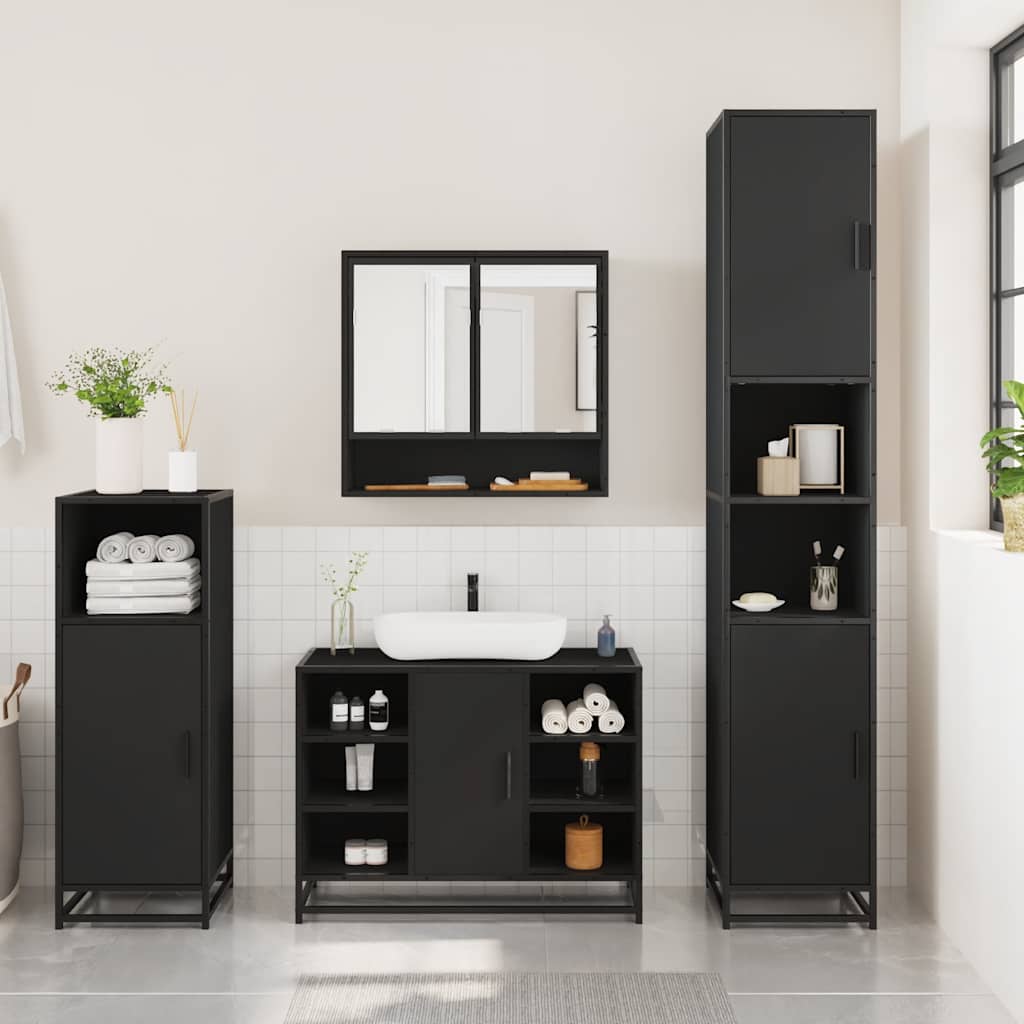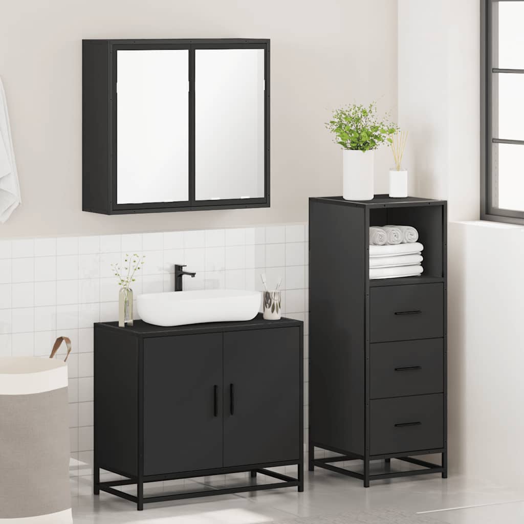 3 pcs conjunto móveis casa de banho derivados de madeira preto