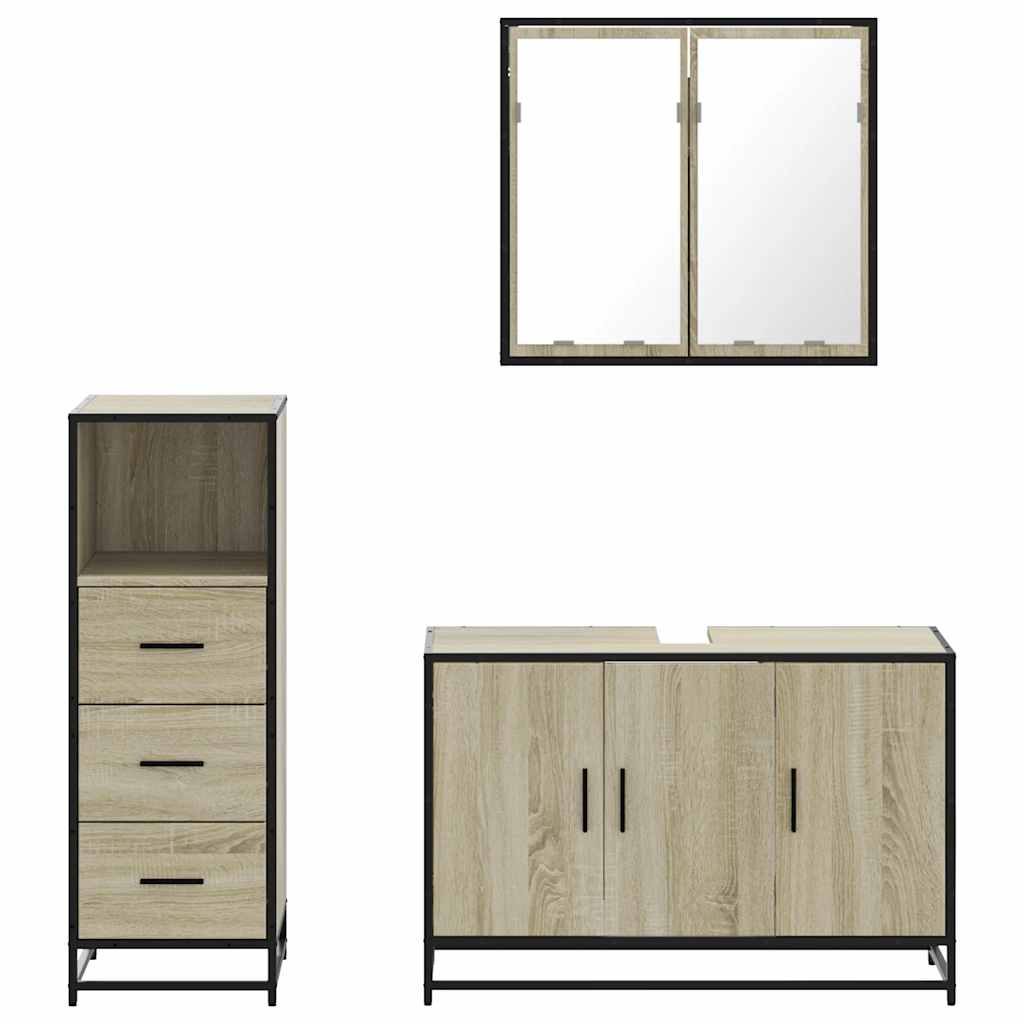 3 pcs conj. móveis casa banho derivados madeira carvalho sonoma