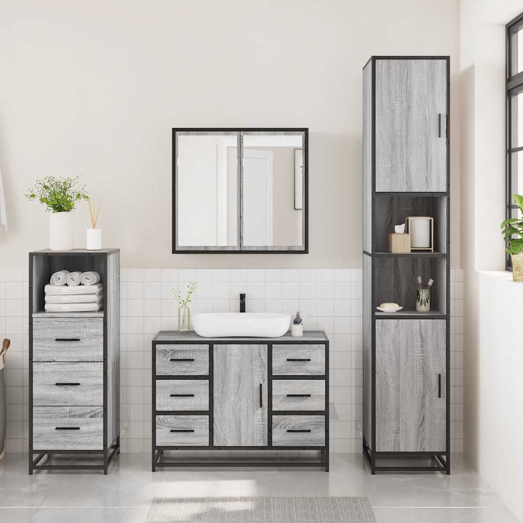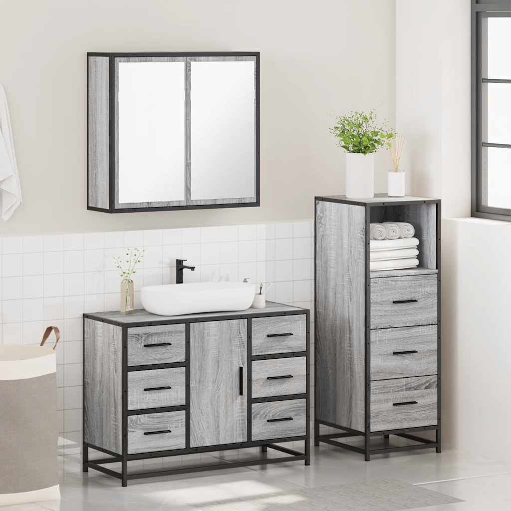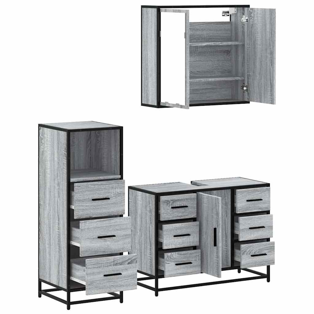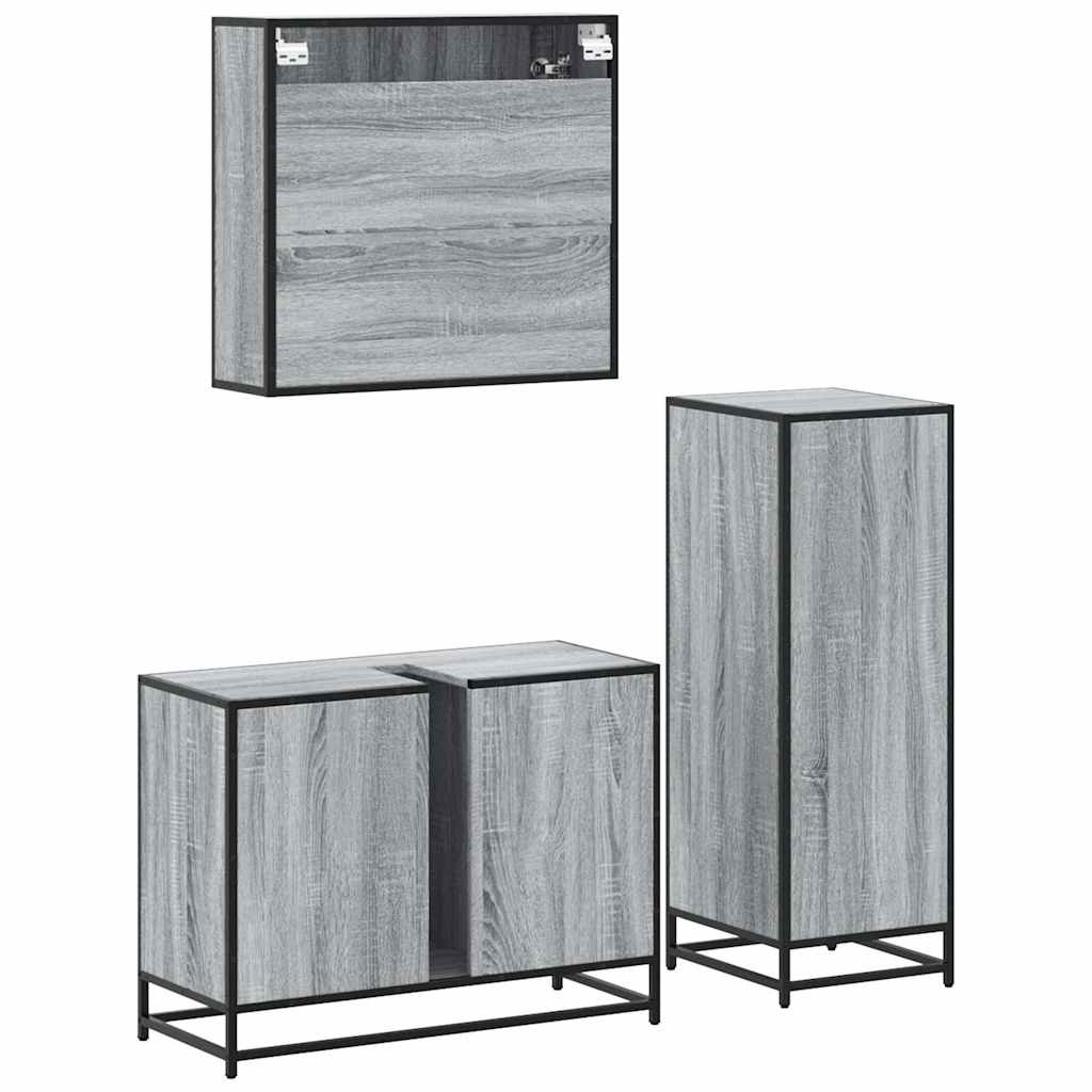 3 pcs Conjunto móveis casa de banho madeira proc. cinza sonoma