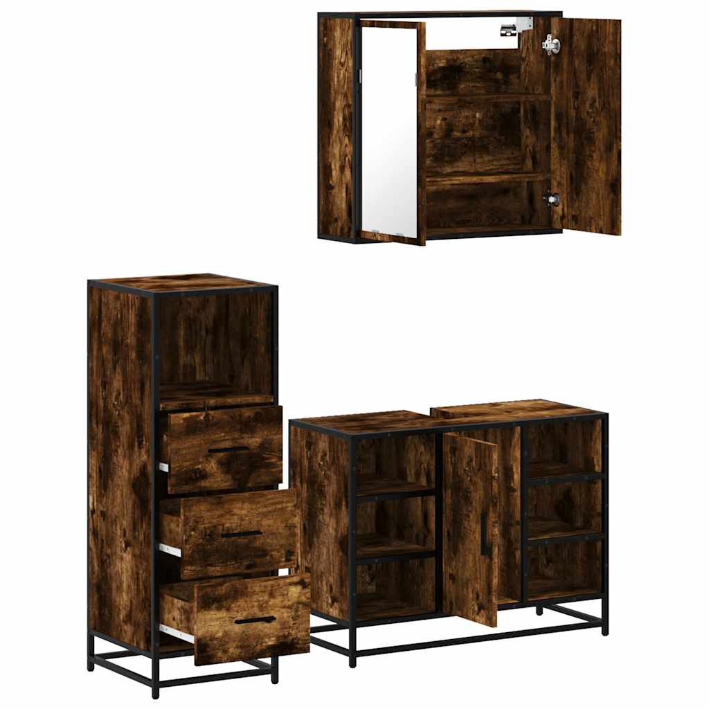 3 pcs conjunto de móveis WC madeira processada carvalho fumado