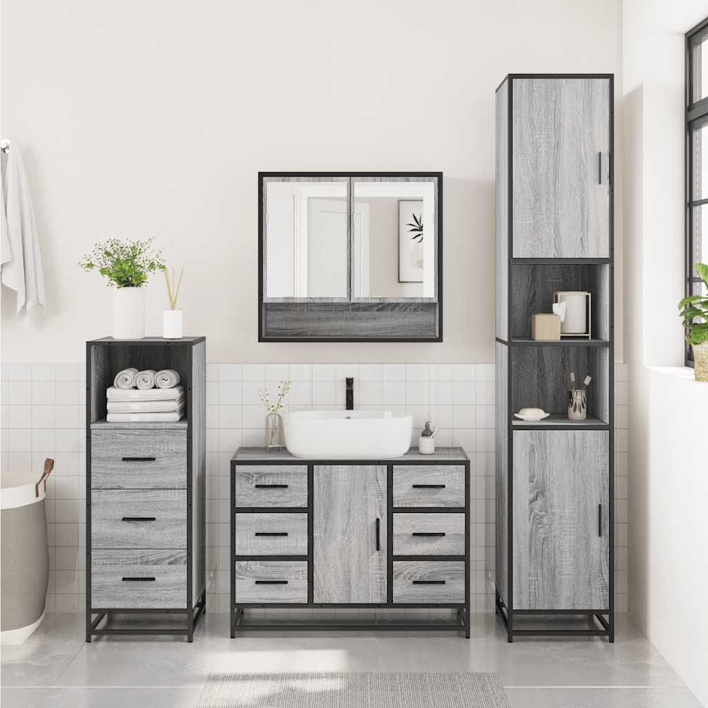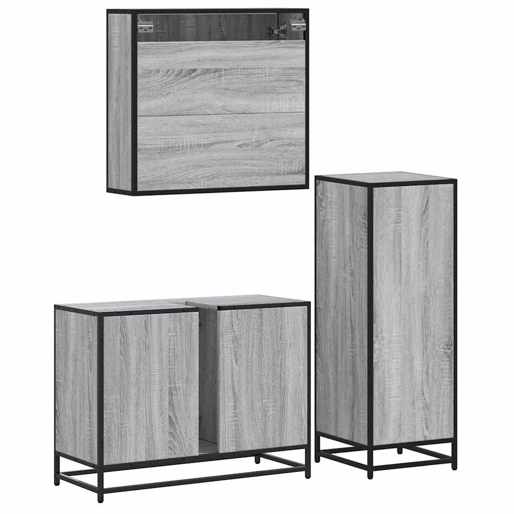 3 pcs Conjunto móveis casa de banho madeira proc. cinza sonoma