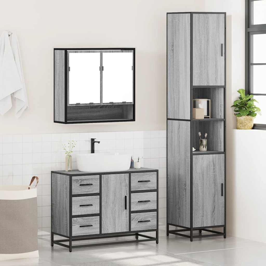 3 pcs Conjunto móveis casa de banho madeira proc. cinza sonoma