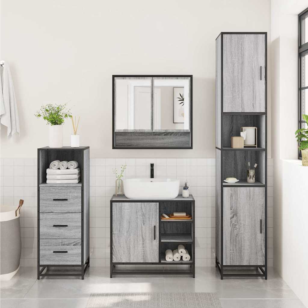 3 pcs Conjunto móveis casa de banho madeira proc. cinza sonoma