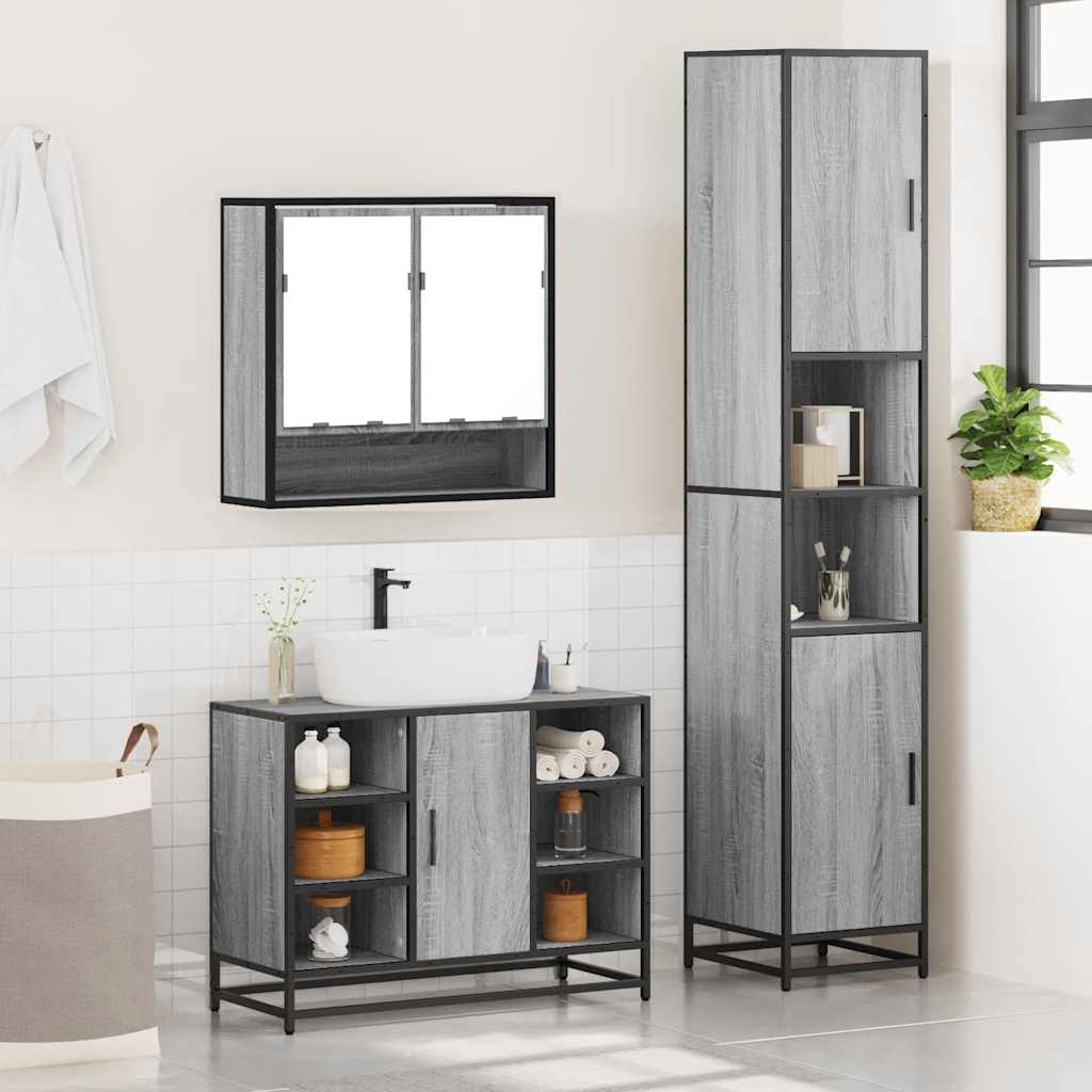 3 pcs Conjunto móveis casa de banho madeira proc. cinza sonoma