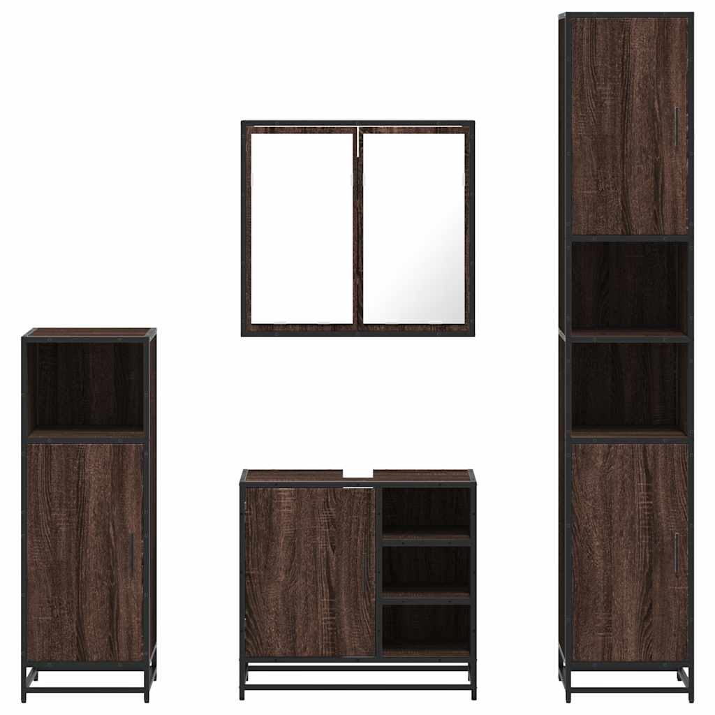 4 pcs conj. móveis WC derivados madeira cor carvalho castanho