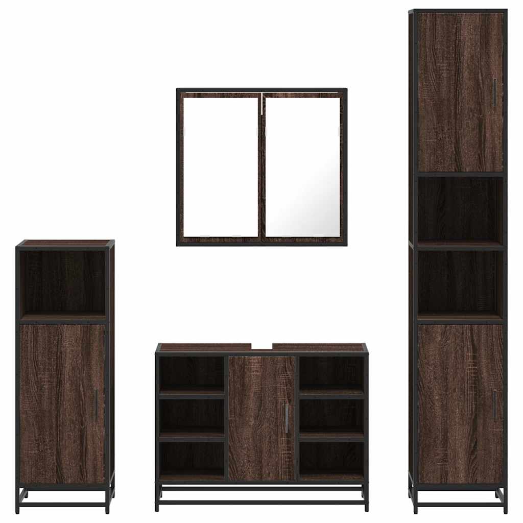 4 pcs conj. móveis WC derivados madeira cor carvalho castanho