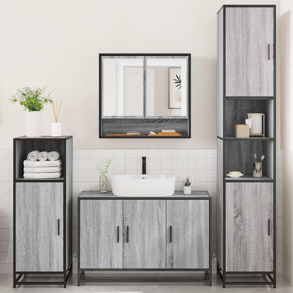 4 pcs Conjunto móveis casa de banho madeira proc. cinza sonoma