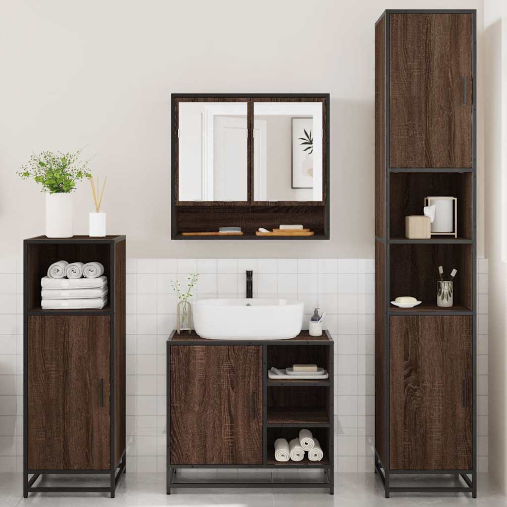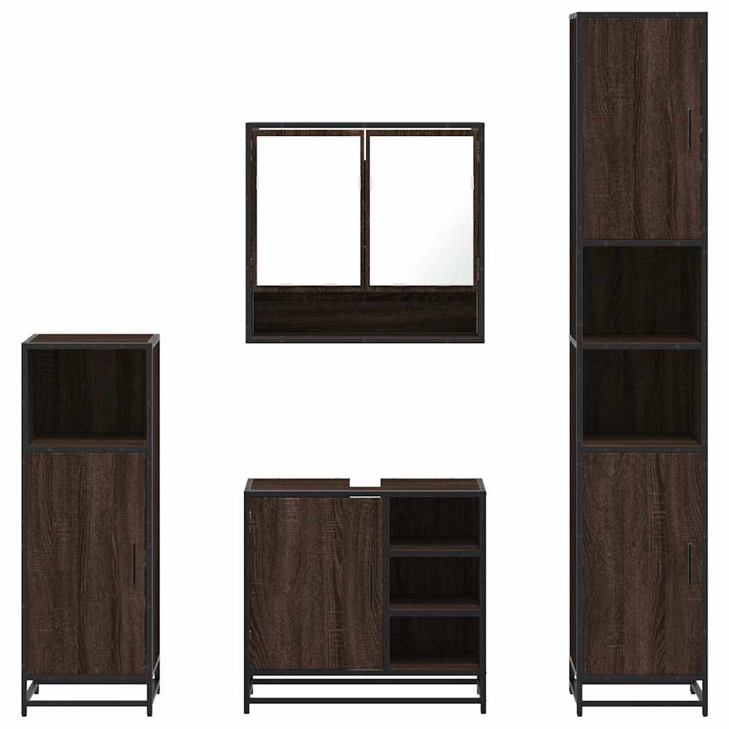 4 pcs conj. móveis WC derivados madeira cor carvalho castanho