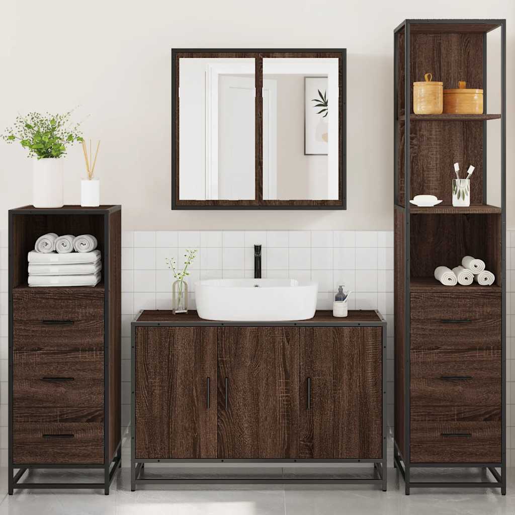 4 pcs conj. móveis WC derivados madeira cor carvalho castanho