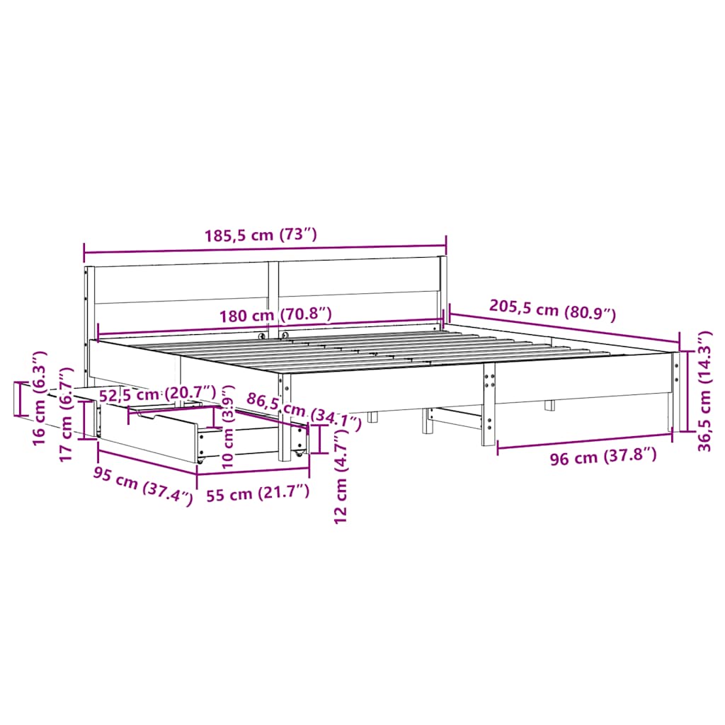 Cama sem colchão 180x200 cm madeira de pinho maciça