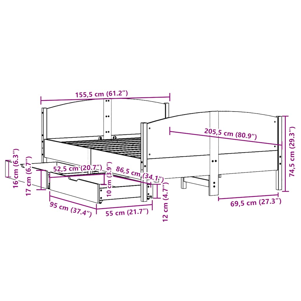 Cama sem colchão 150x200 cm madeira de pinho maciça