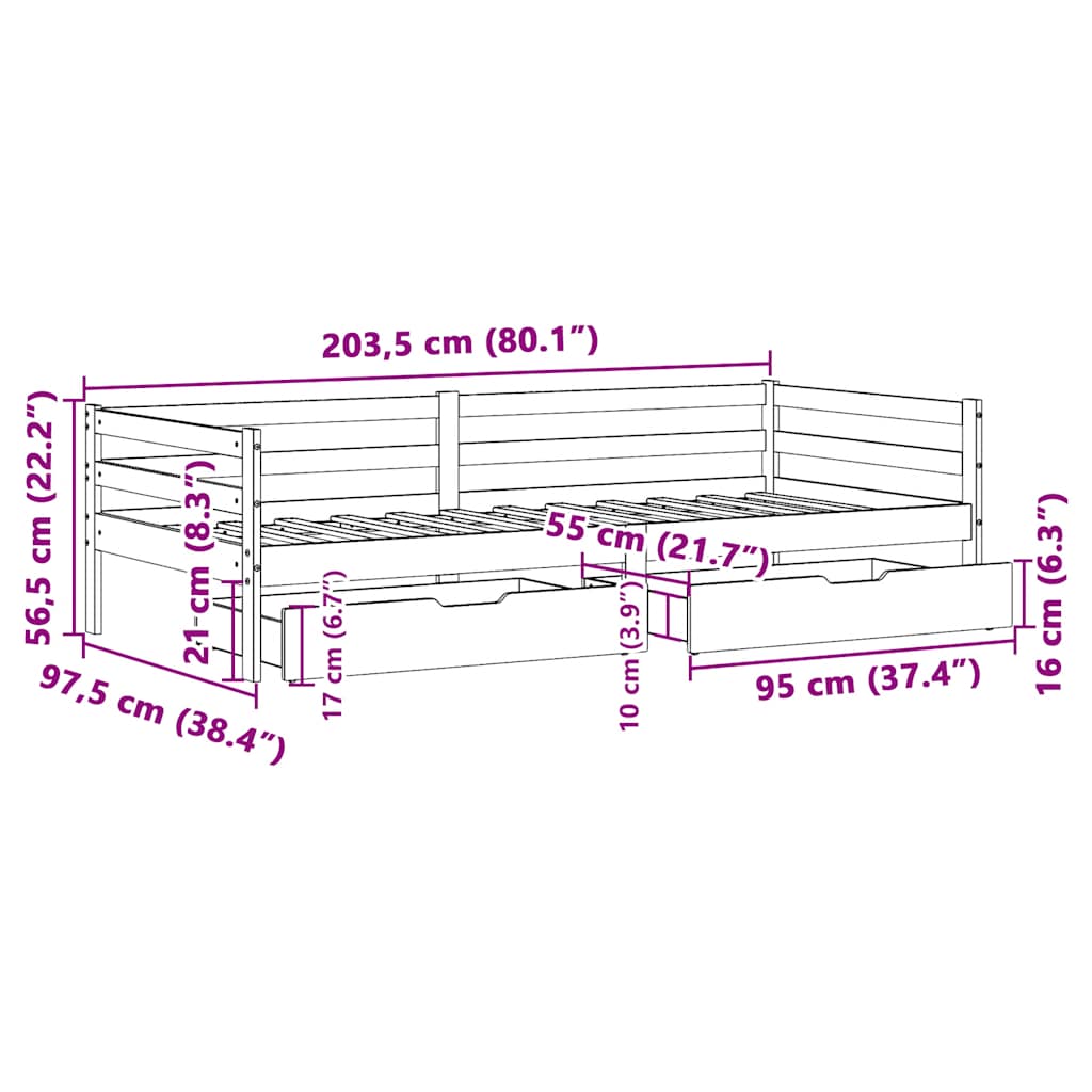 Sofá-cama com gavetas 90x200 cm madeira de pinho maciça