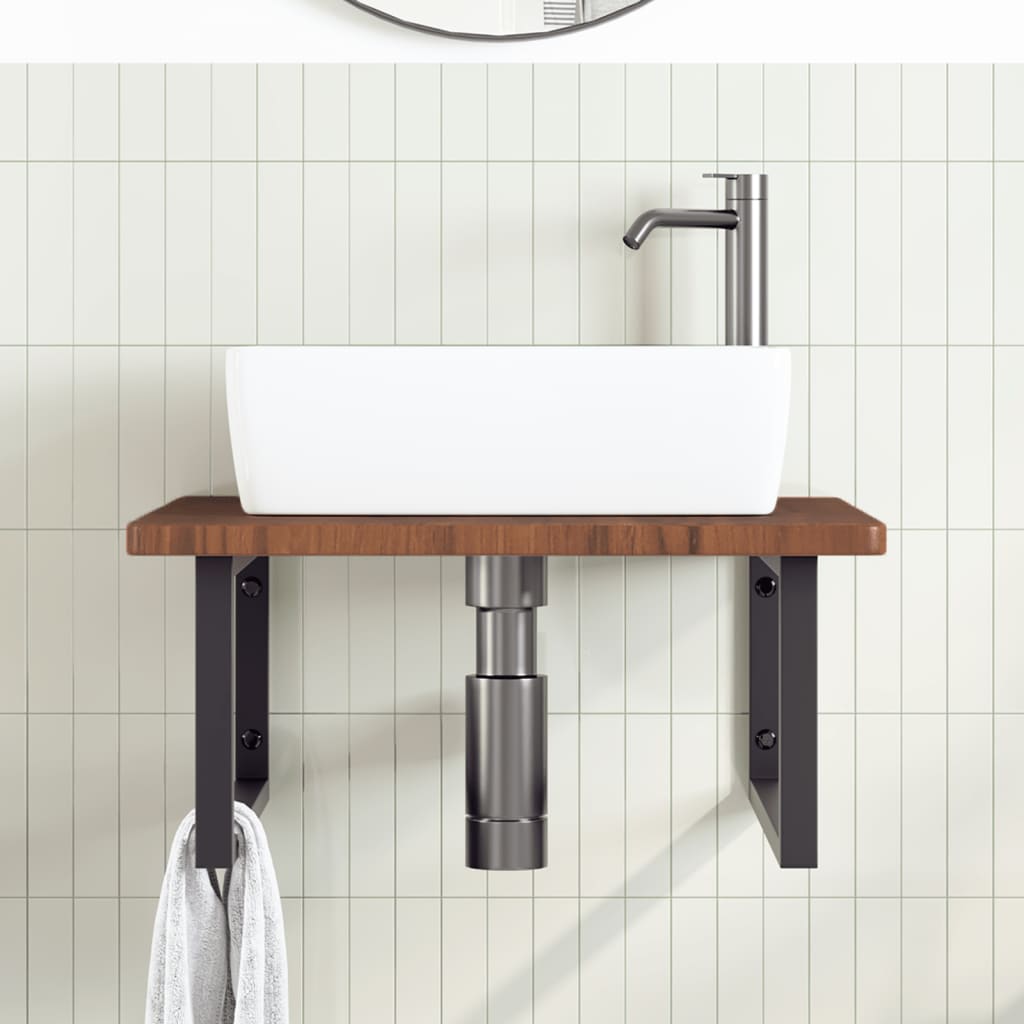 Prateleira de parede p/ lavatório aço/madeira carvalho maciça