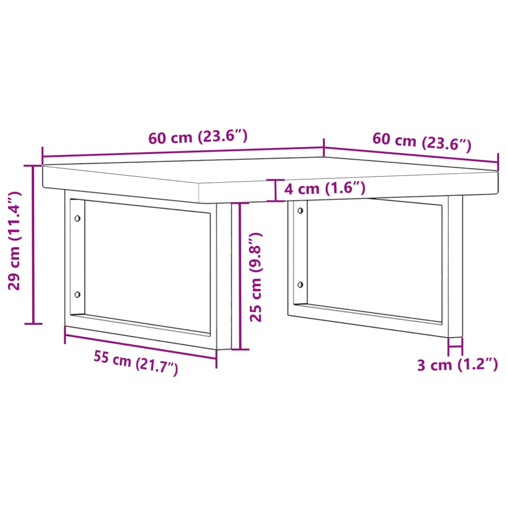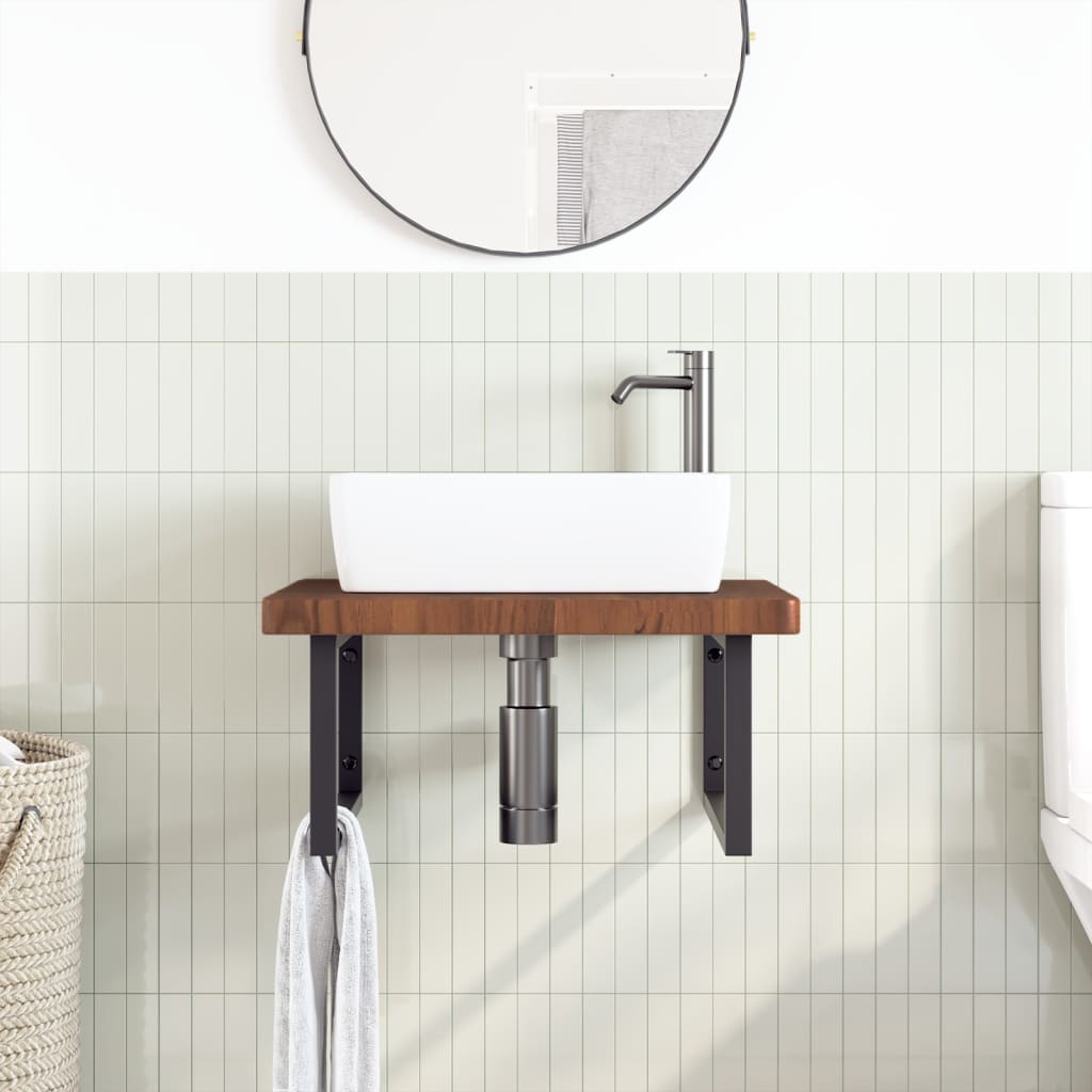 Prateleira de parede p/ lavatório aço/madeira carvalho maciça