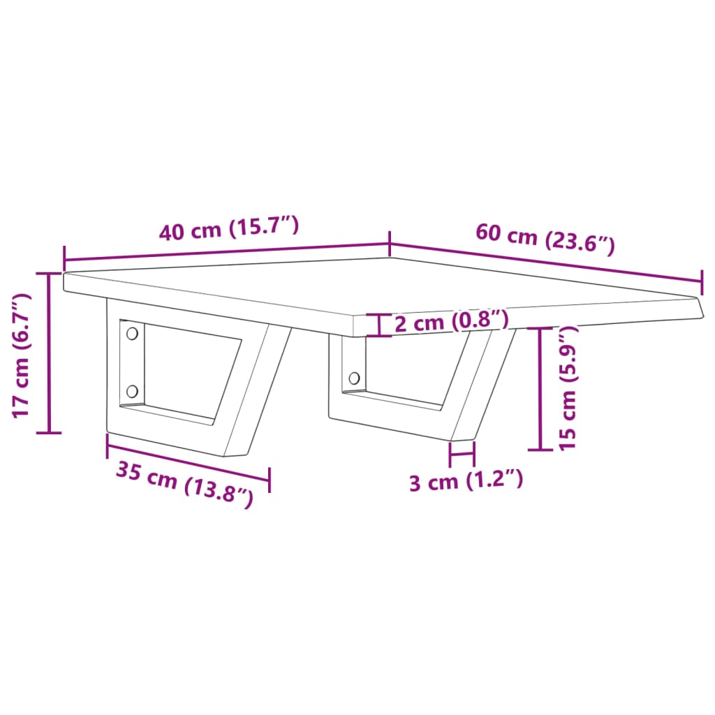 Prateleira de parede p/ lavatório aço/madeira carvalho maciça