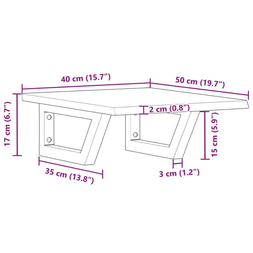 - Tamanho do suporte de prateleira: 15 x 35 cm (L x C)