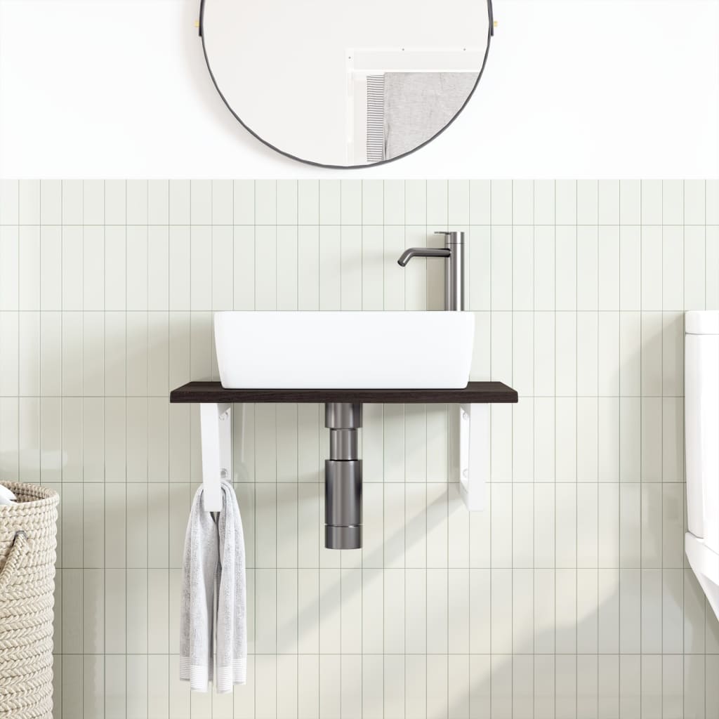 Prateleira de parede p/ lavatório aço/madeira carvalho maciça