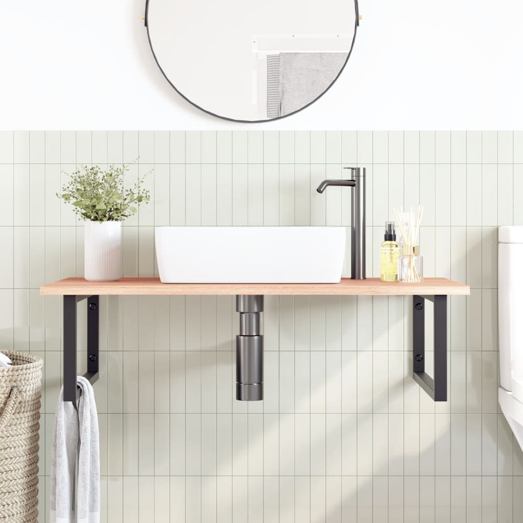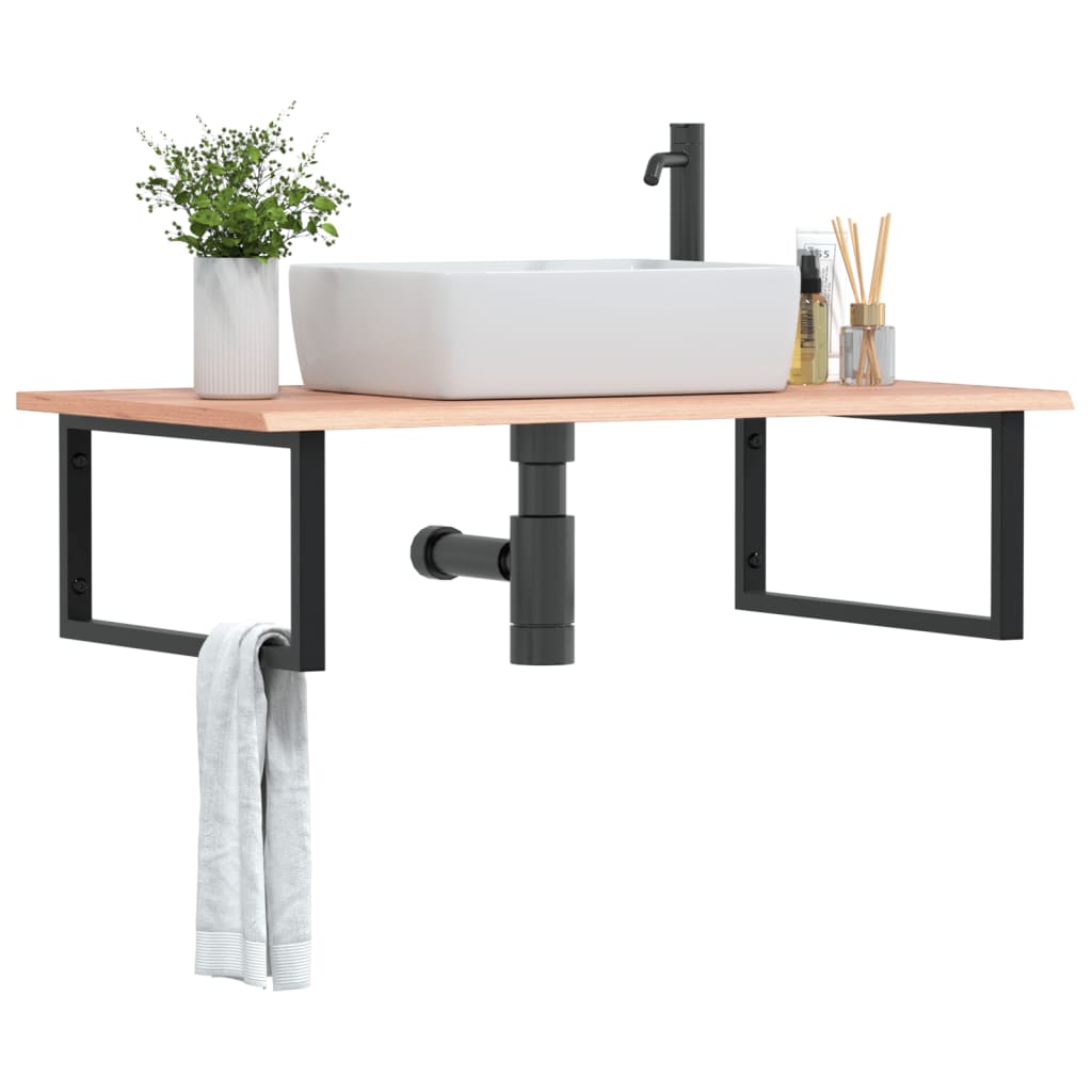 Prateleira de parede p/ lavatório aço/madeira carvalho maciça