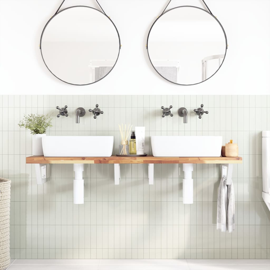 Prateleira de parede p/ lavatório aço/madeira de acácia maciça