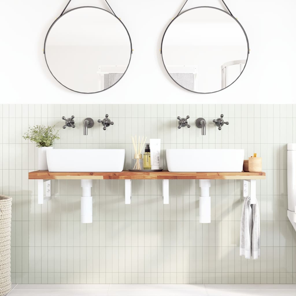 Prateleira de parede p/ lavatório aço/madeira de acácia maciça