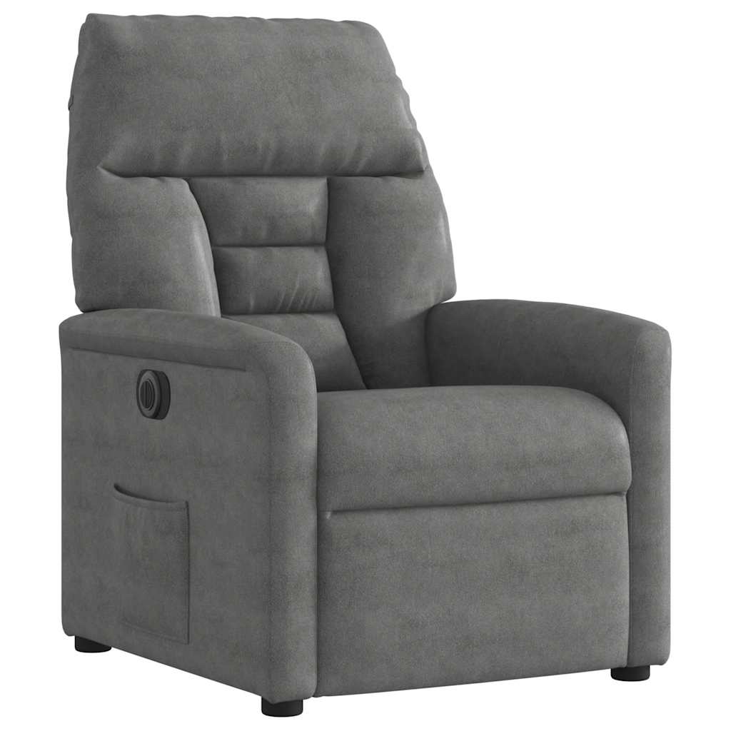 Poltrona reclinável elétrica tecido de microfibra cinza-escuro