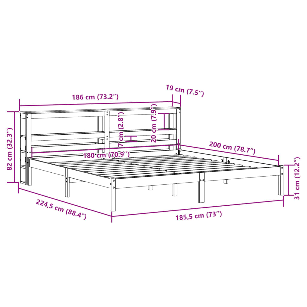 - Dimensões da cabeceira: 186 x 19 x 82 cm (C x L x A)