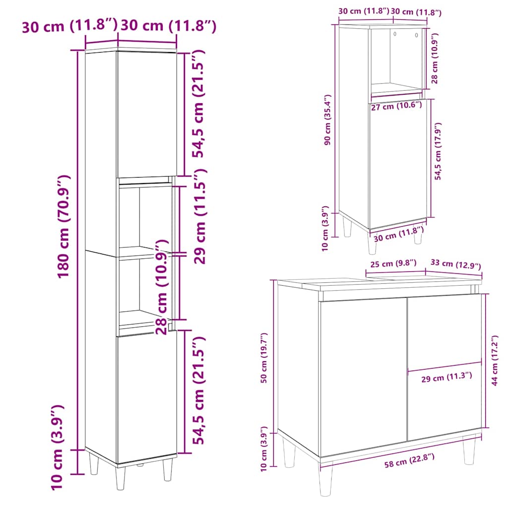 3 pcs conj. móveis casa banho derivados madeira carvalho sonoma
