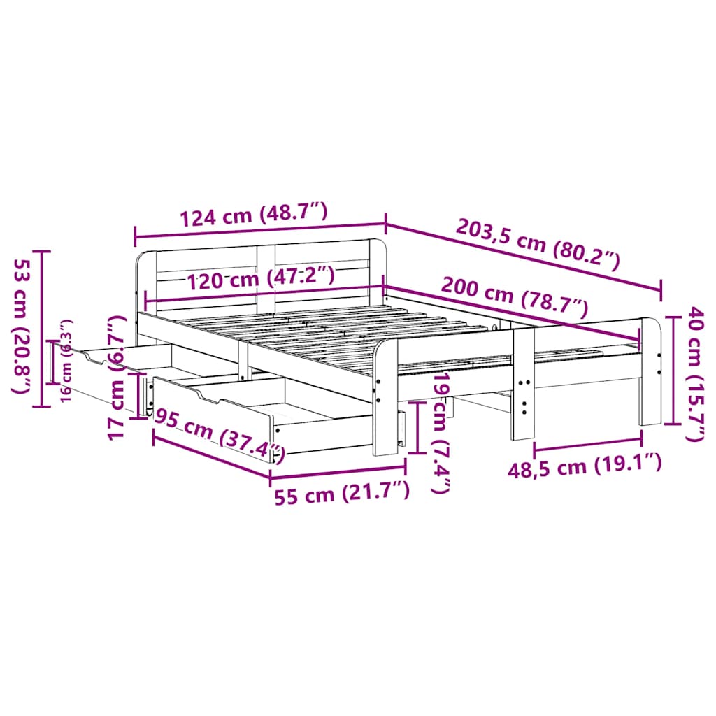 Cama sem colchão 120x200 cm madeira de pinho maciça