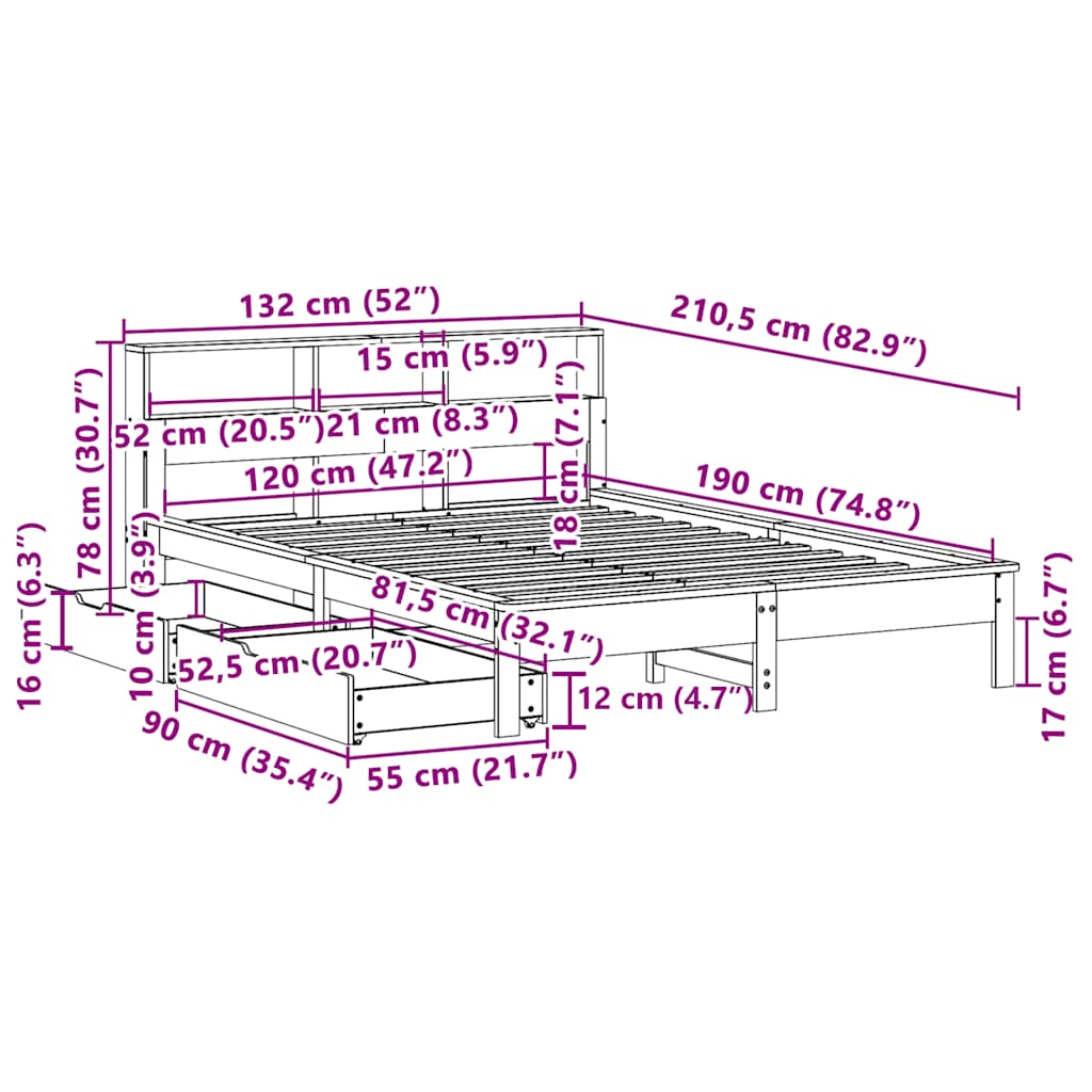 Cama com estante sem colchão 120x190 cm pinho maciço